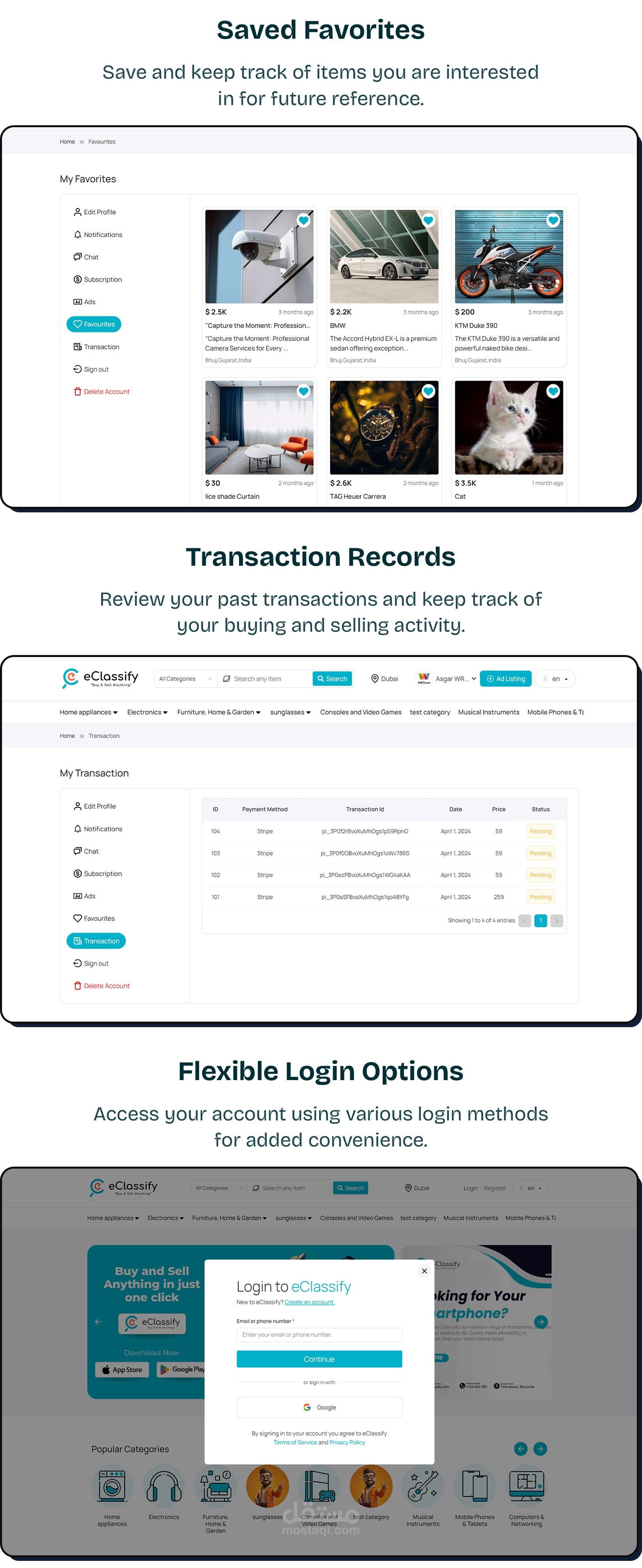 يمكن للمستخدمين تسجيل الدخول باستخدام Google أو البريد الإلكتروني أو رقم الهاتف، مما يضمن المرونة وإمكانية الوصول.