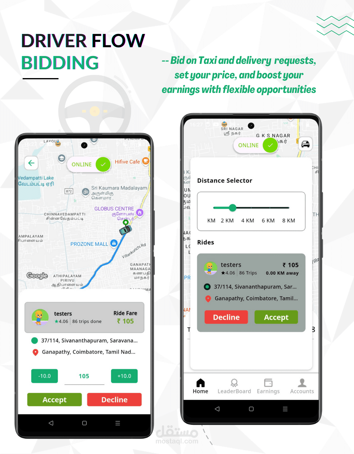 كود مصدر Flutter لتطبيقات المستخدم والسائق
