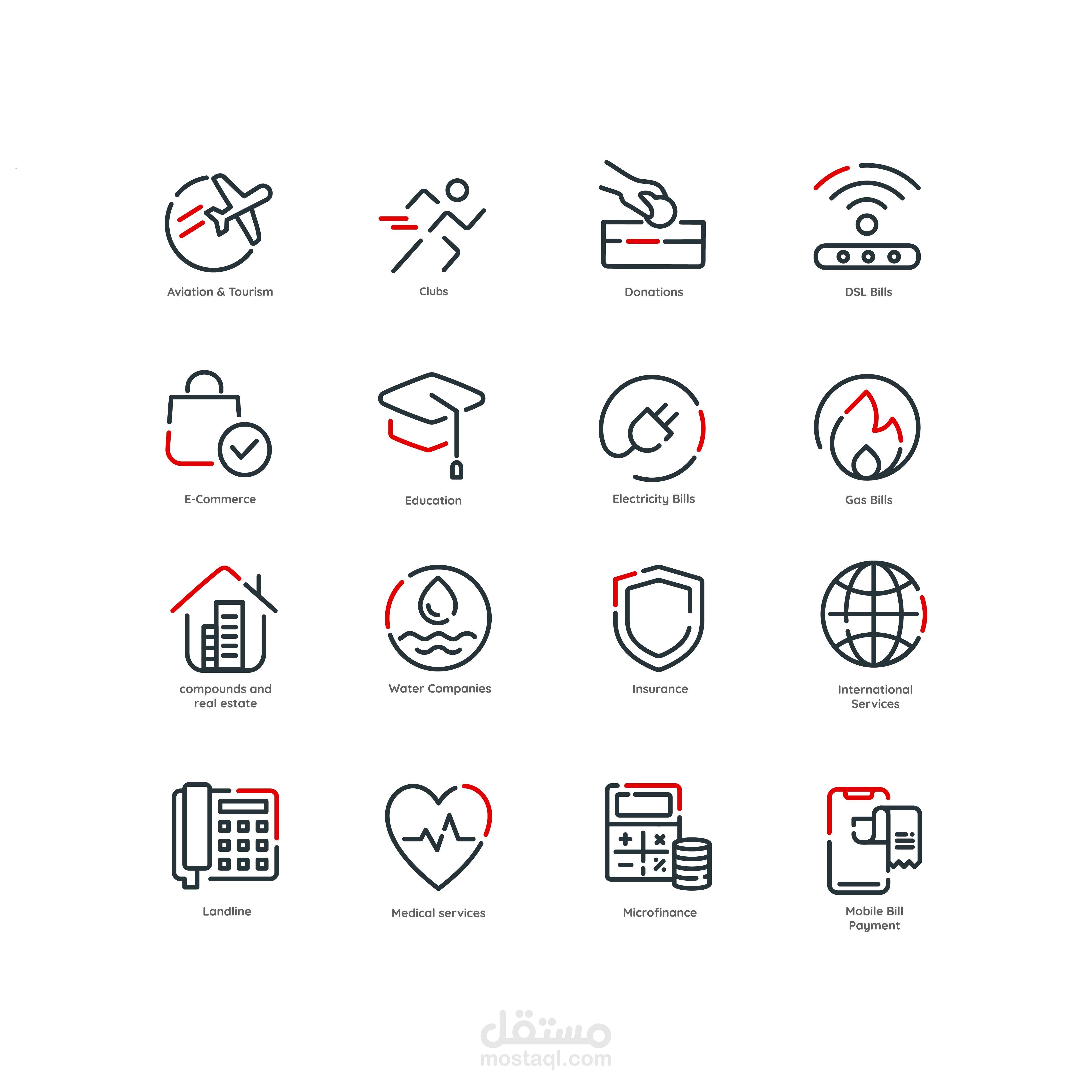 The use of red as the primary color directly ties the identity to Vodafone, reinforcing brand association and mental recall.