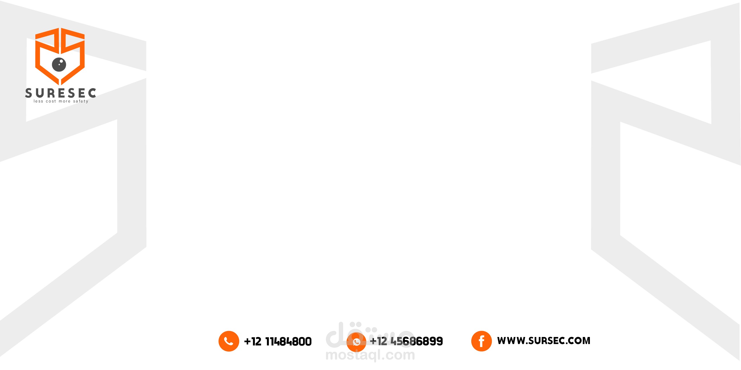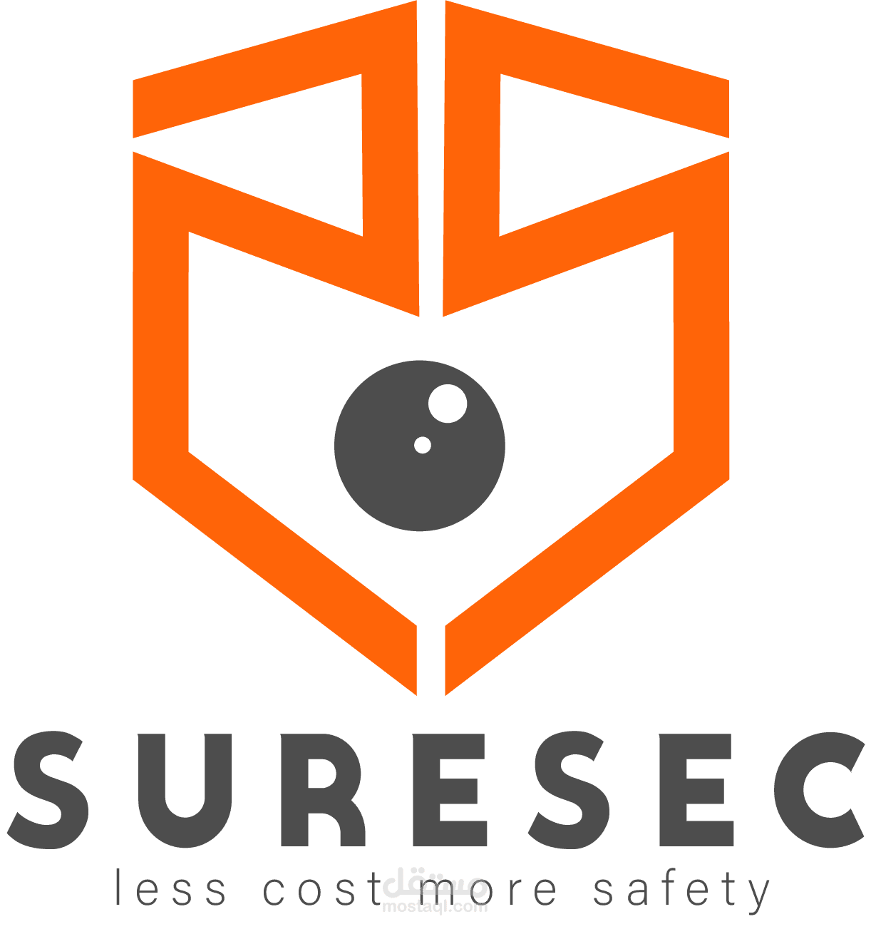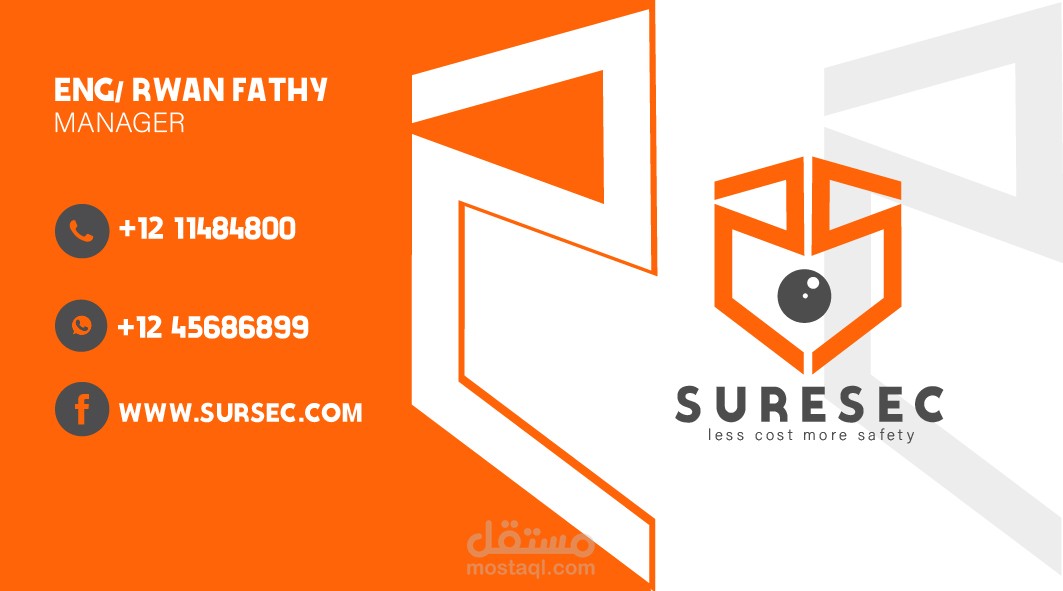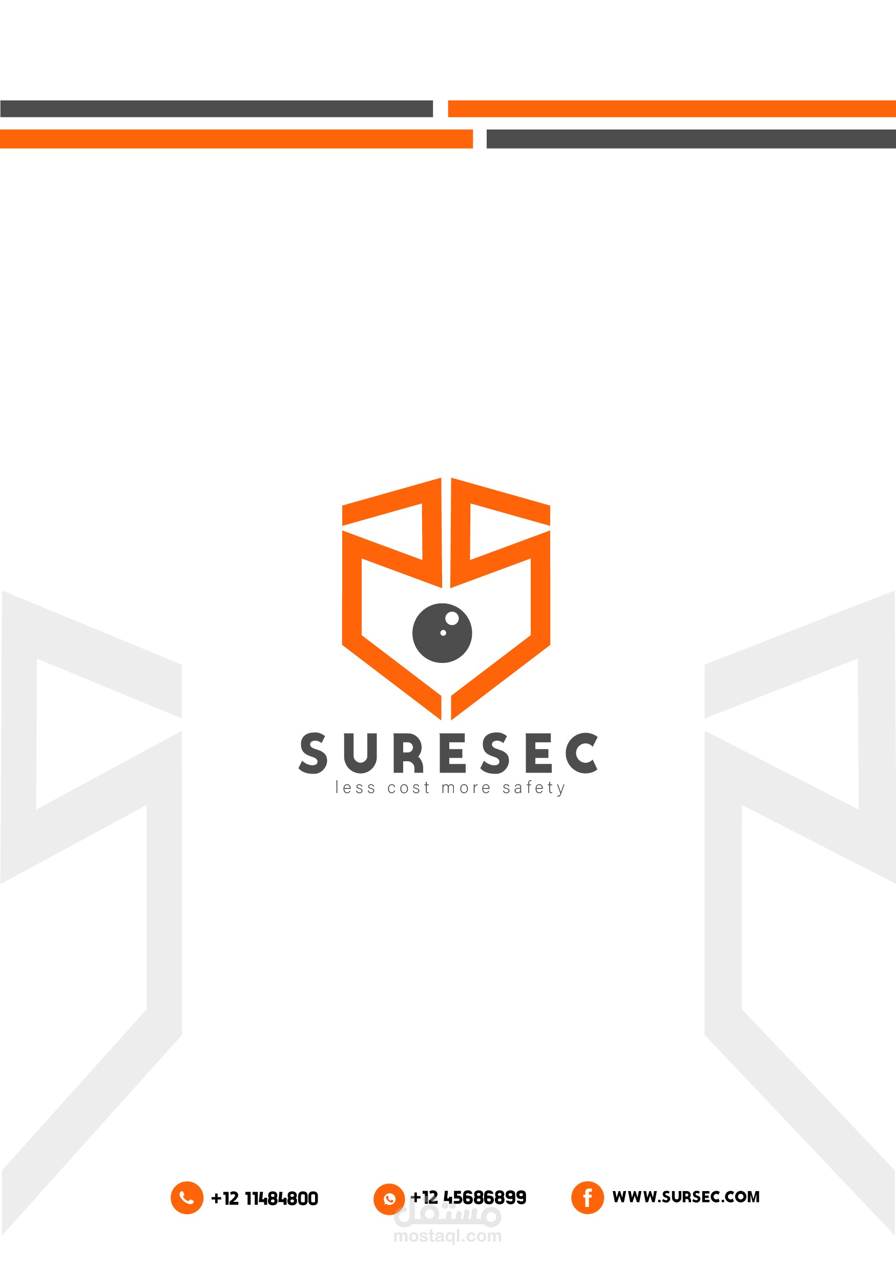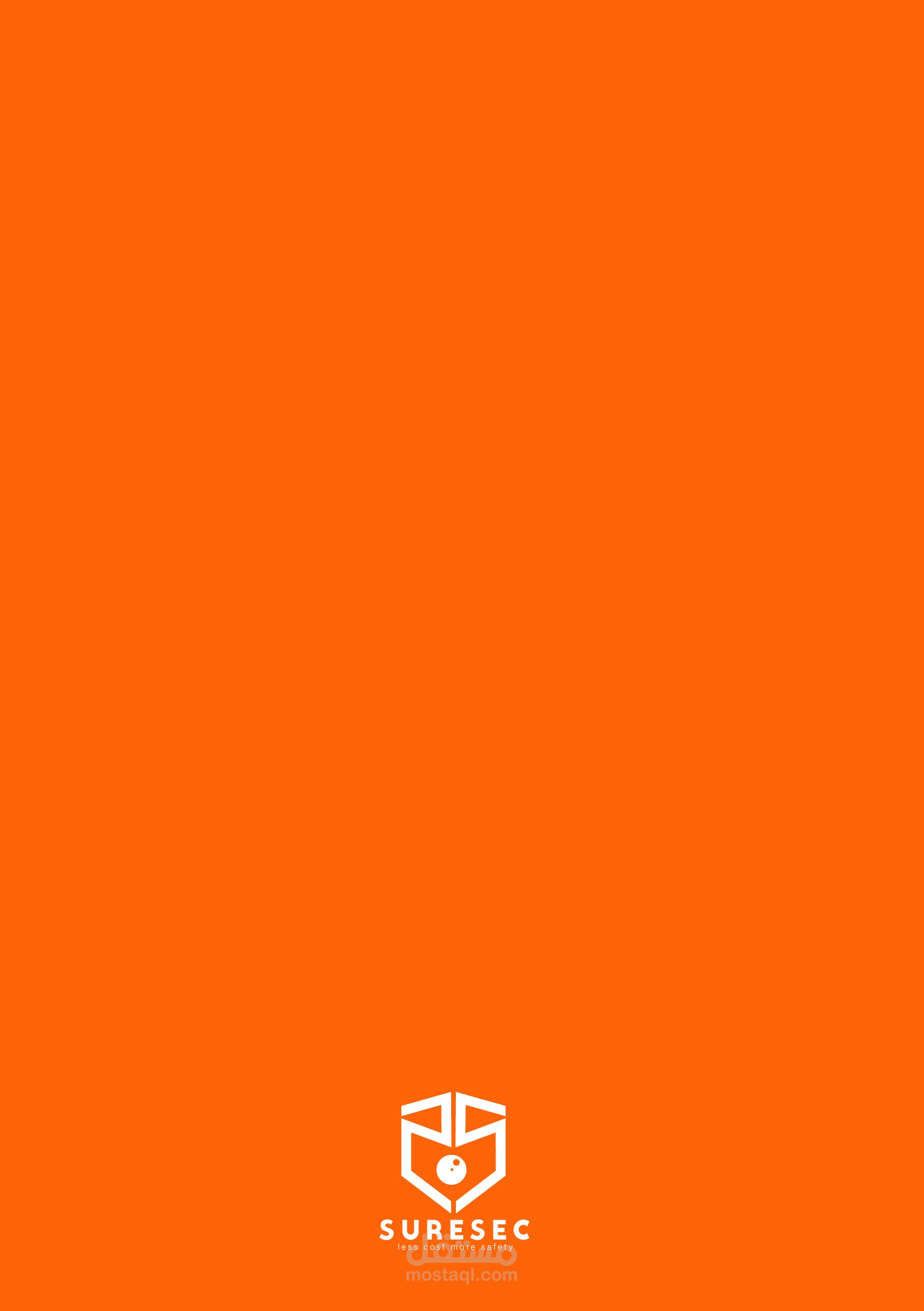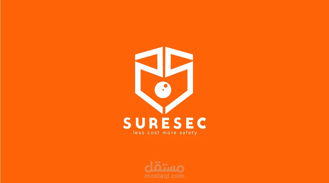 هذه المجموعة من الملفات تمثل هوية شركة "SURESEC"، التي تقدم خدمات تركز على توفير الأمان بتكلفة أقل (Less Cost, More Safety). التصاميم تشمل: