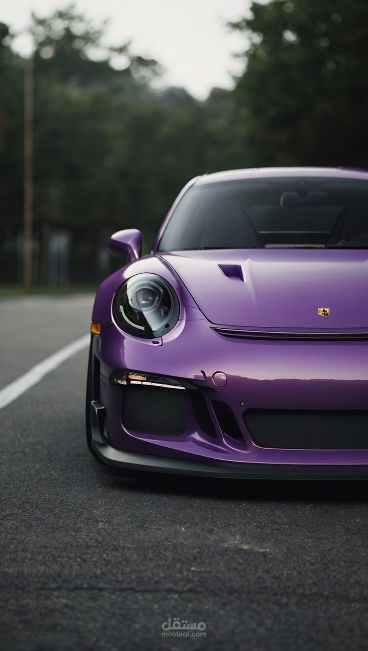 صورة جانبية واضحة للـ GT3 RS باللون البنفسجي.