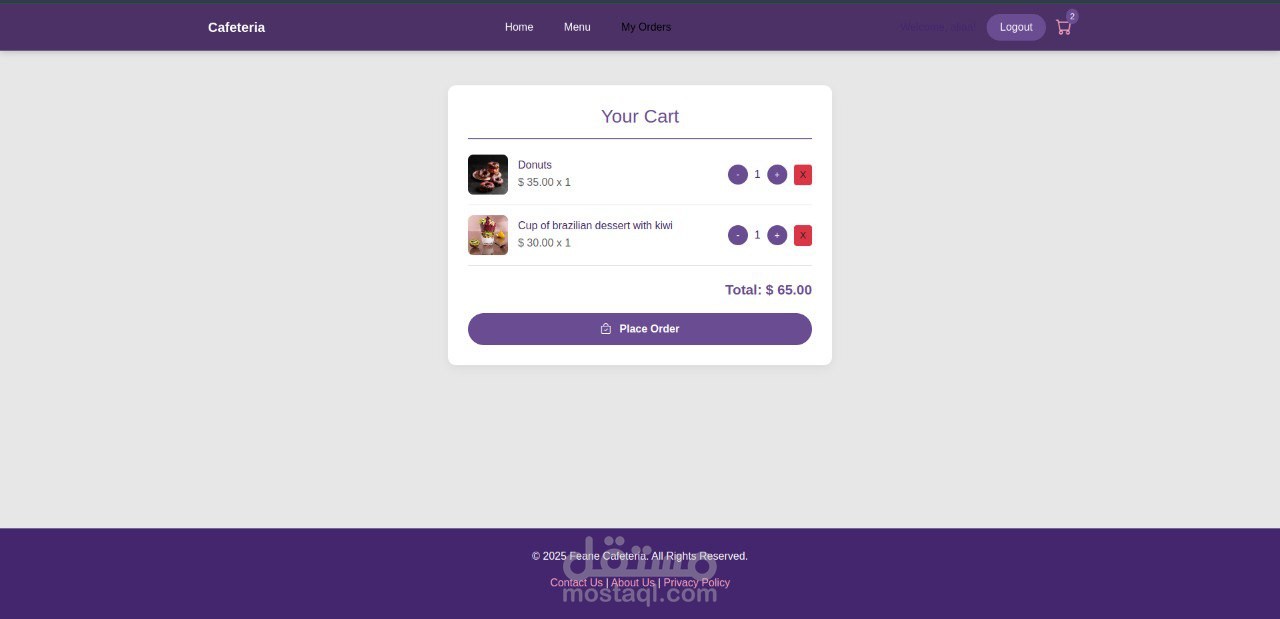 هذا المشروع يوضح قدرتي على العمل باستخدام لغات البرمجة الخلفية (PHP)، وإدارة قواعد البيانات (MySQL)، وربطها بواجهة مستخدم متكاملة لبناء نظام طلب إلكتروني فعّال للكافيتريا.