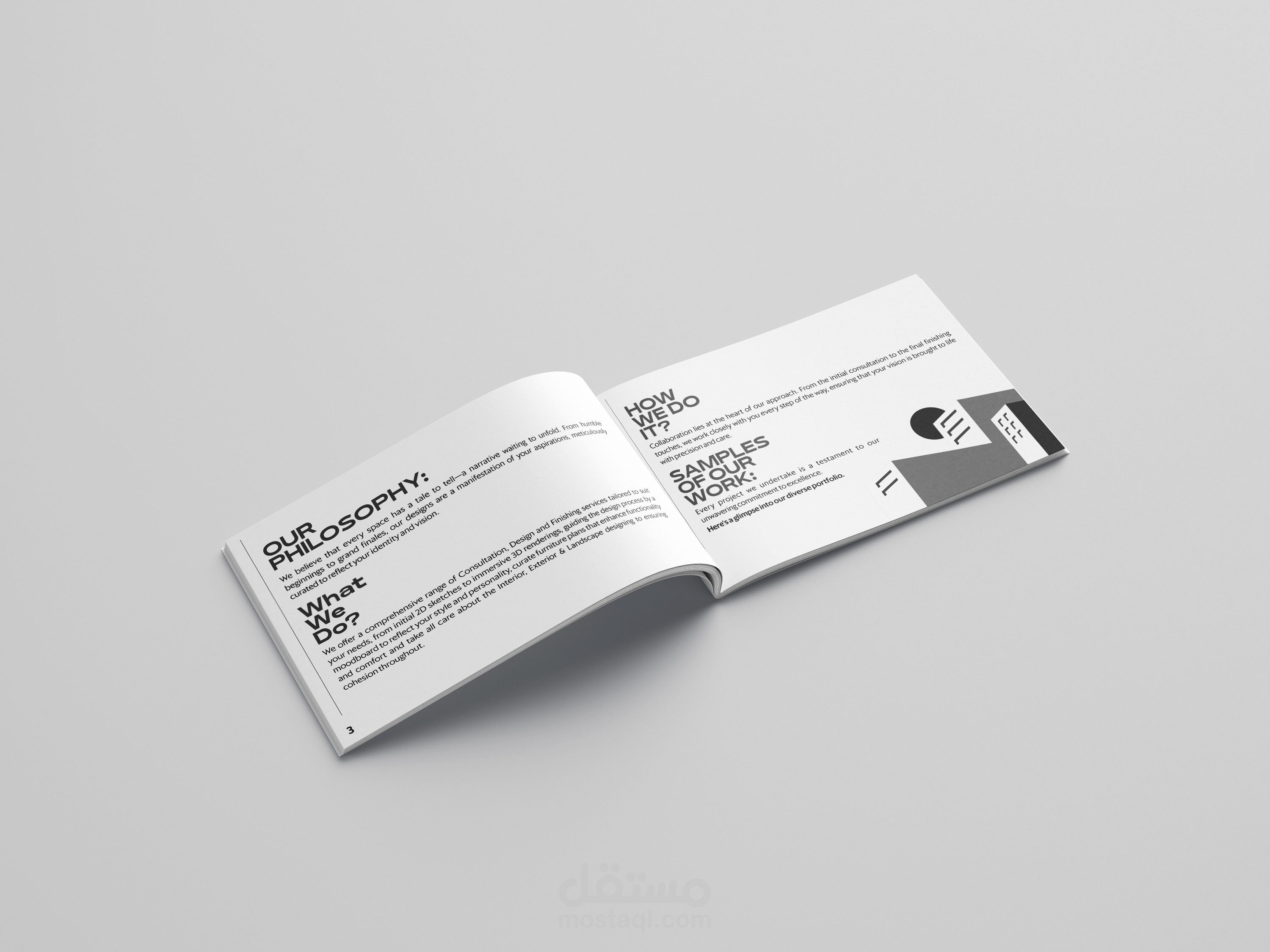 A simple design that takes into account the company's identity and displays what is related to architecture and decoration work