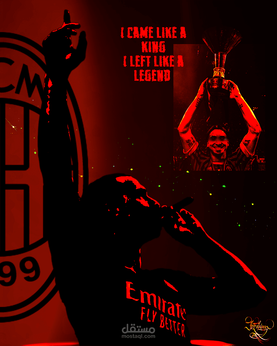 توقيع فني مكتوب عليه "Ibrahimovic" بخط زخرفي، مما يعزز فكرة أن هذا البوستر تكريمي للنجم السويدي زلاتان إبراهيموفيتش.