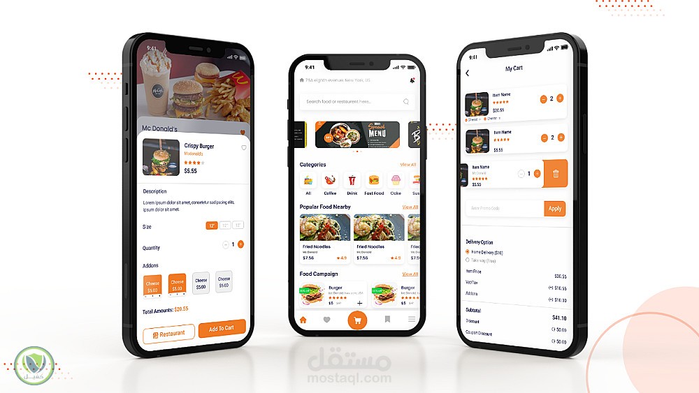 قمت بتصميم واجهات وتجربة المستخدم لتطبيق توصيل طلبات، مع التركيز على:
