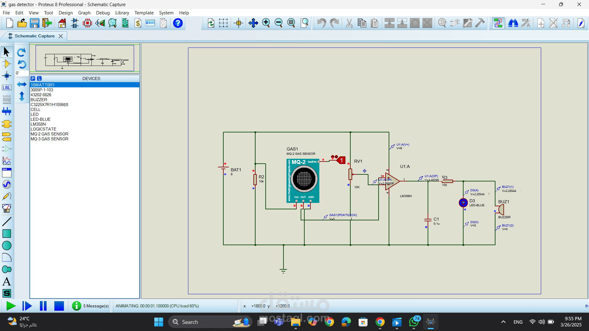 gas detector simulation on proteus using gas sensor mq02