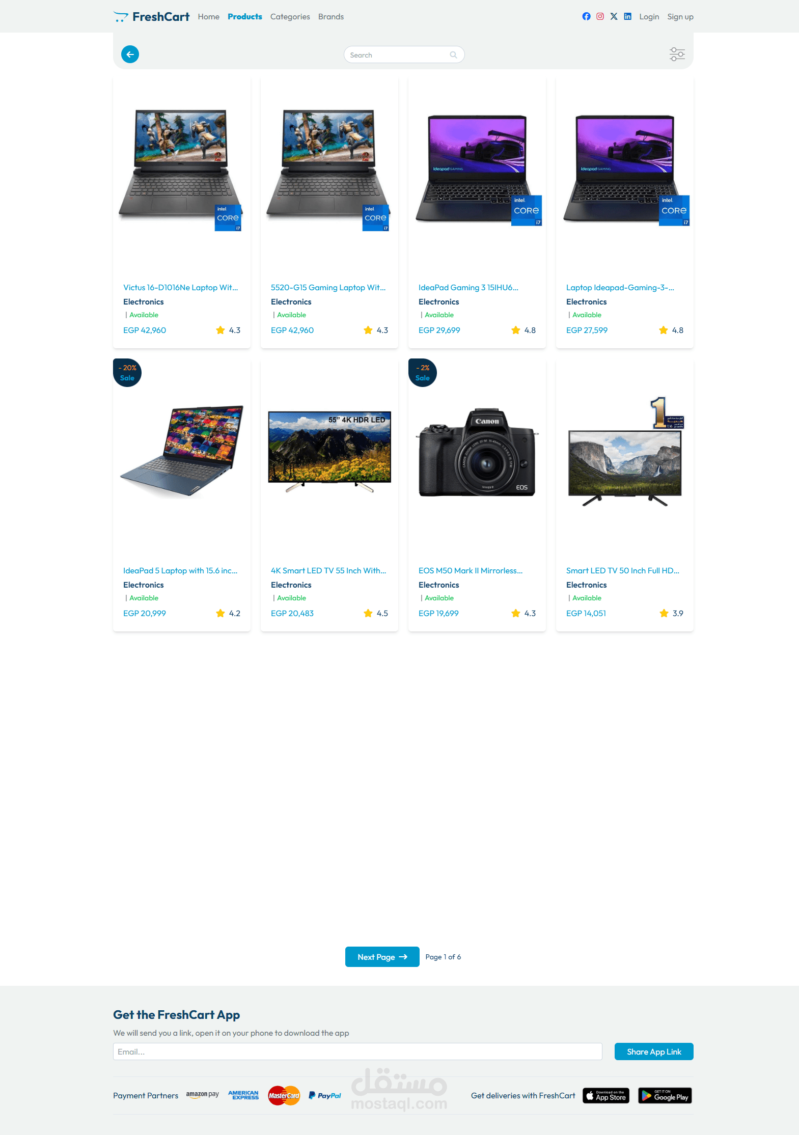 خيارات تصفية وفرز حسب الفئات والعلامات التجارية.