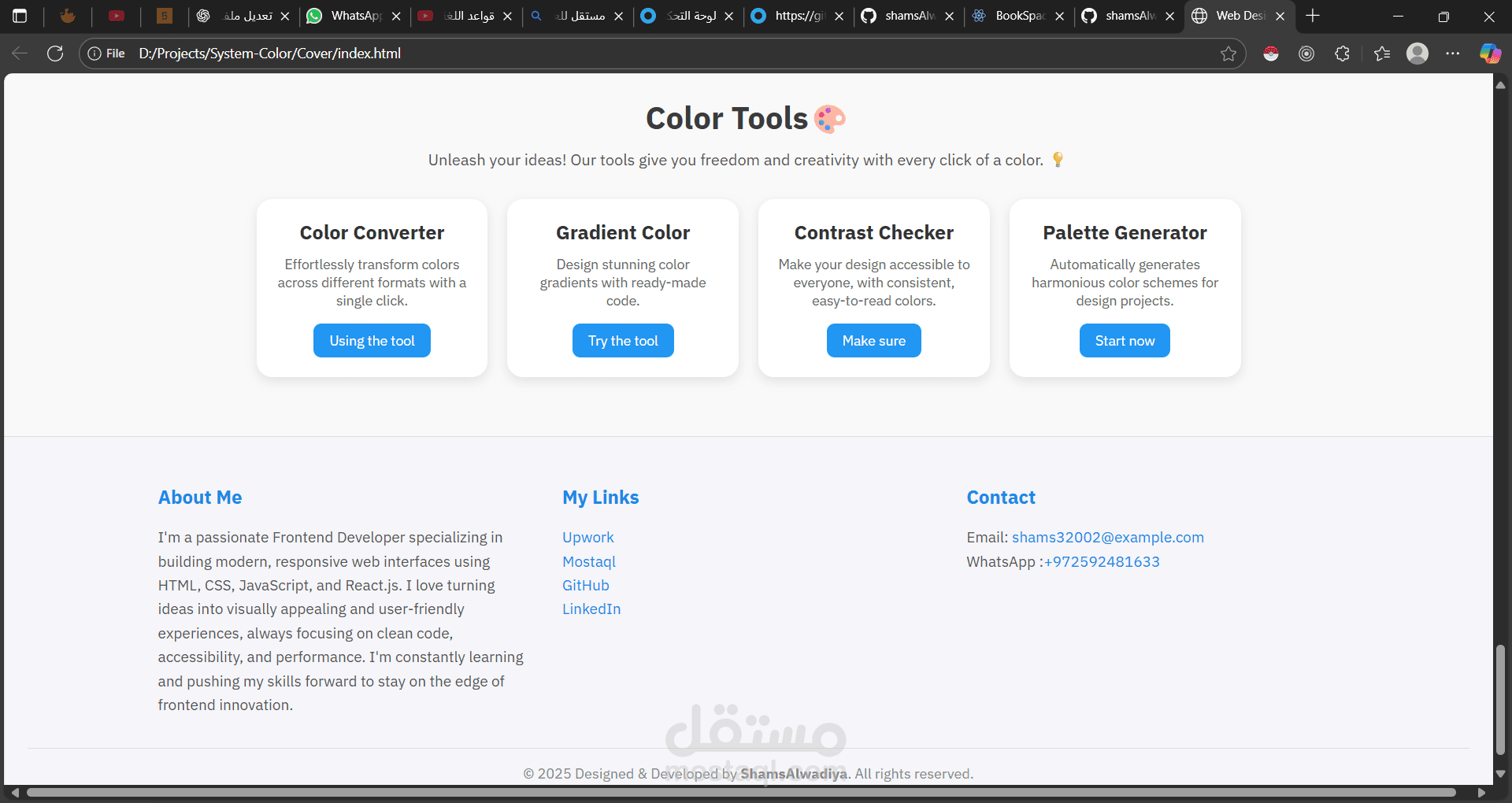 يمثل المشروع مثالًا عمليًا على قدرتي على بناء أدوات تفاعلية بواجهة مستخدم أنيقة وتجربة استخدام مريحة للمصممين والمطورين.