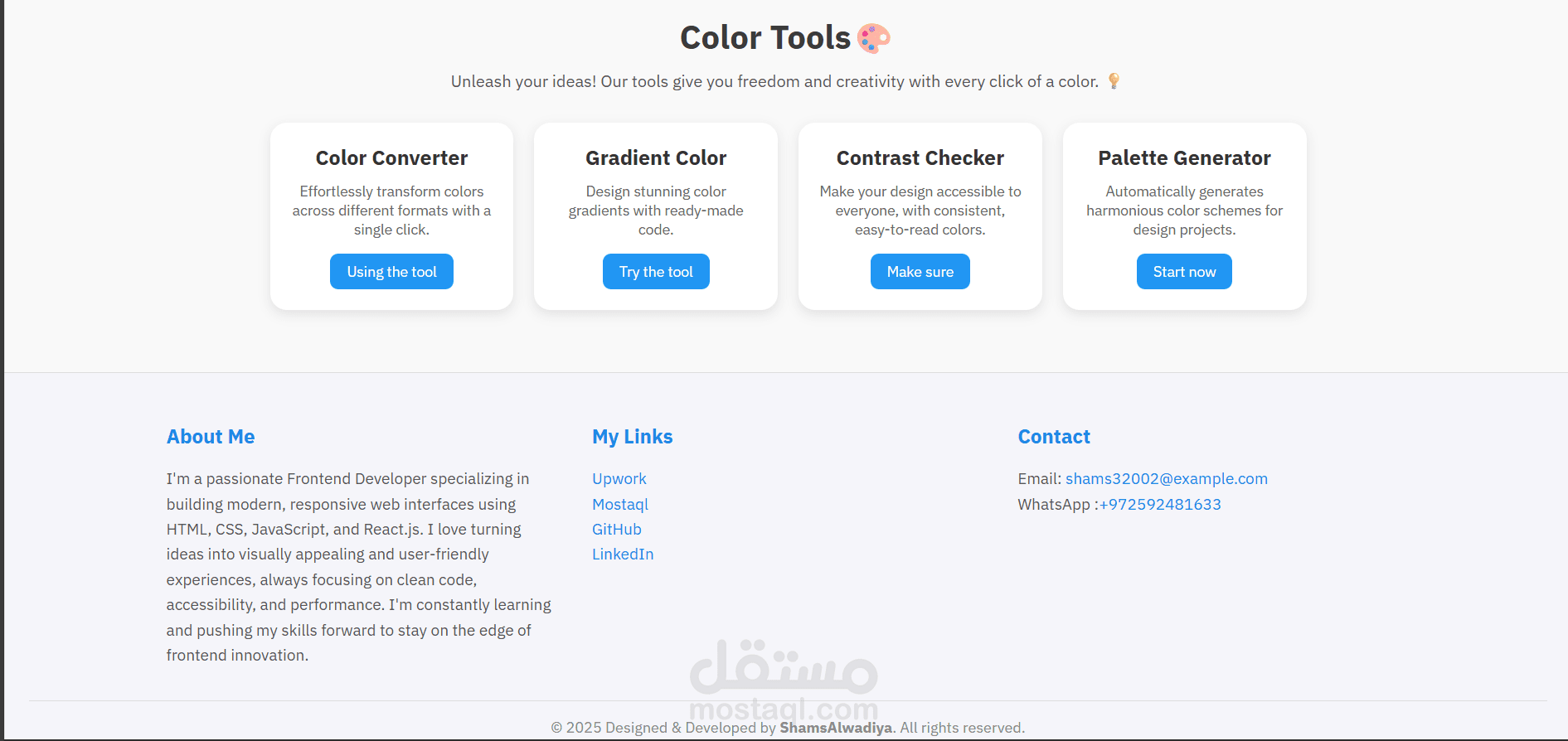 يمثل المشروع مثالًا عمليًا على قدرتي على بناء أدوات تفاعلية بواجهة مستخدم أنيقة وتجربة استخدام مريحة للمصممين والمطورين.