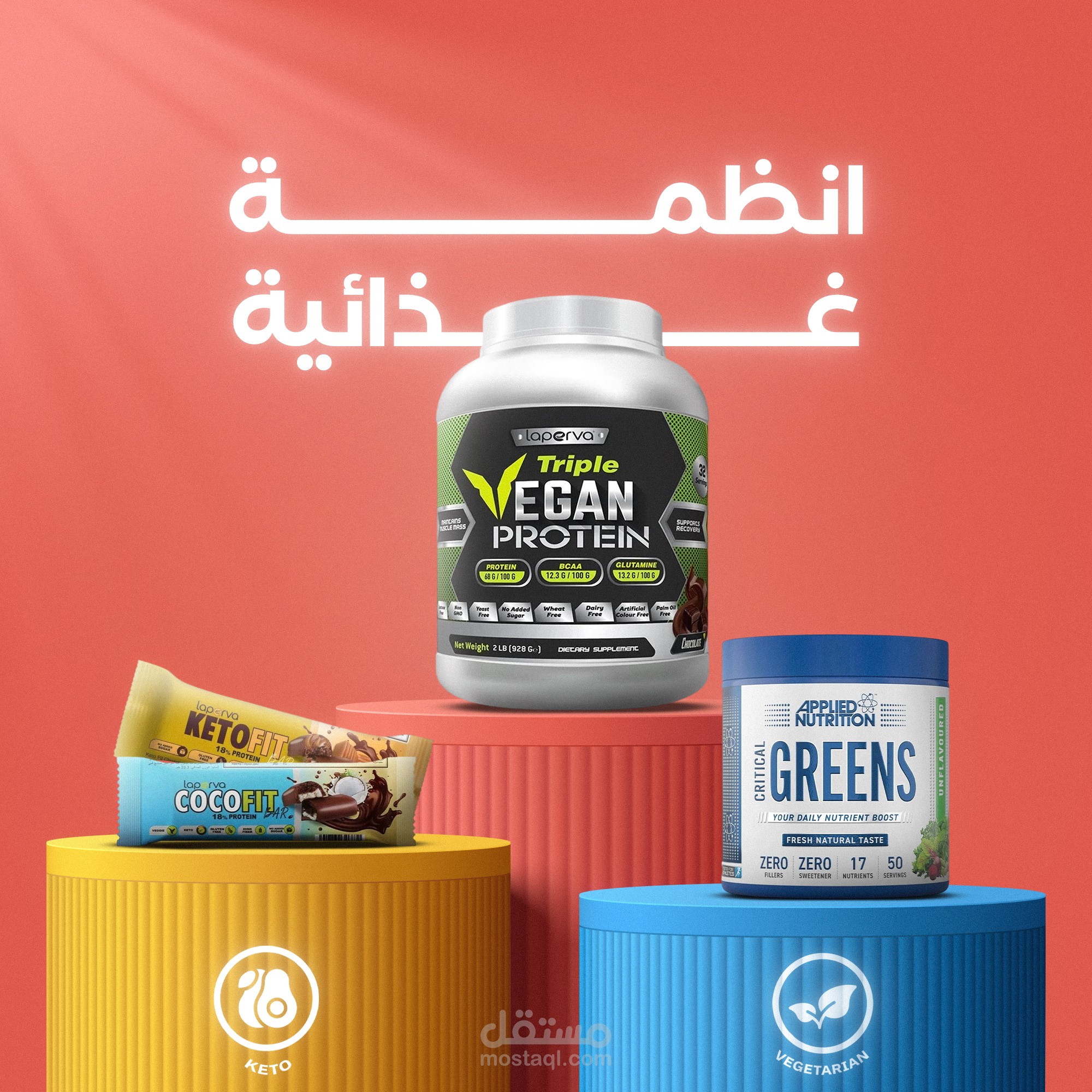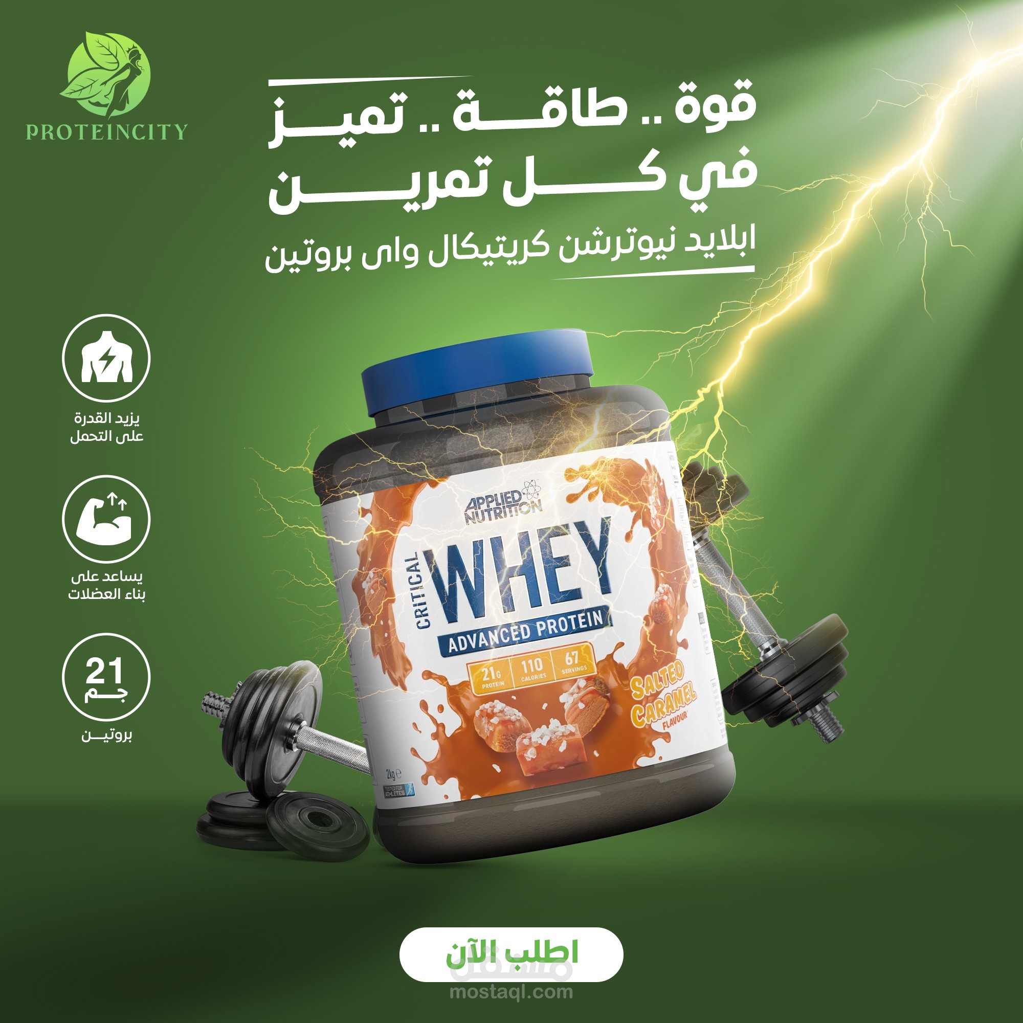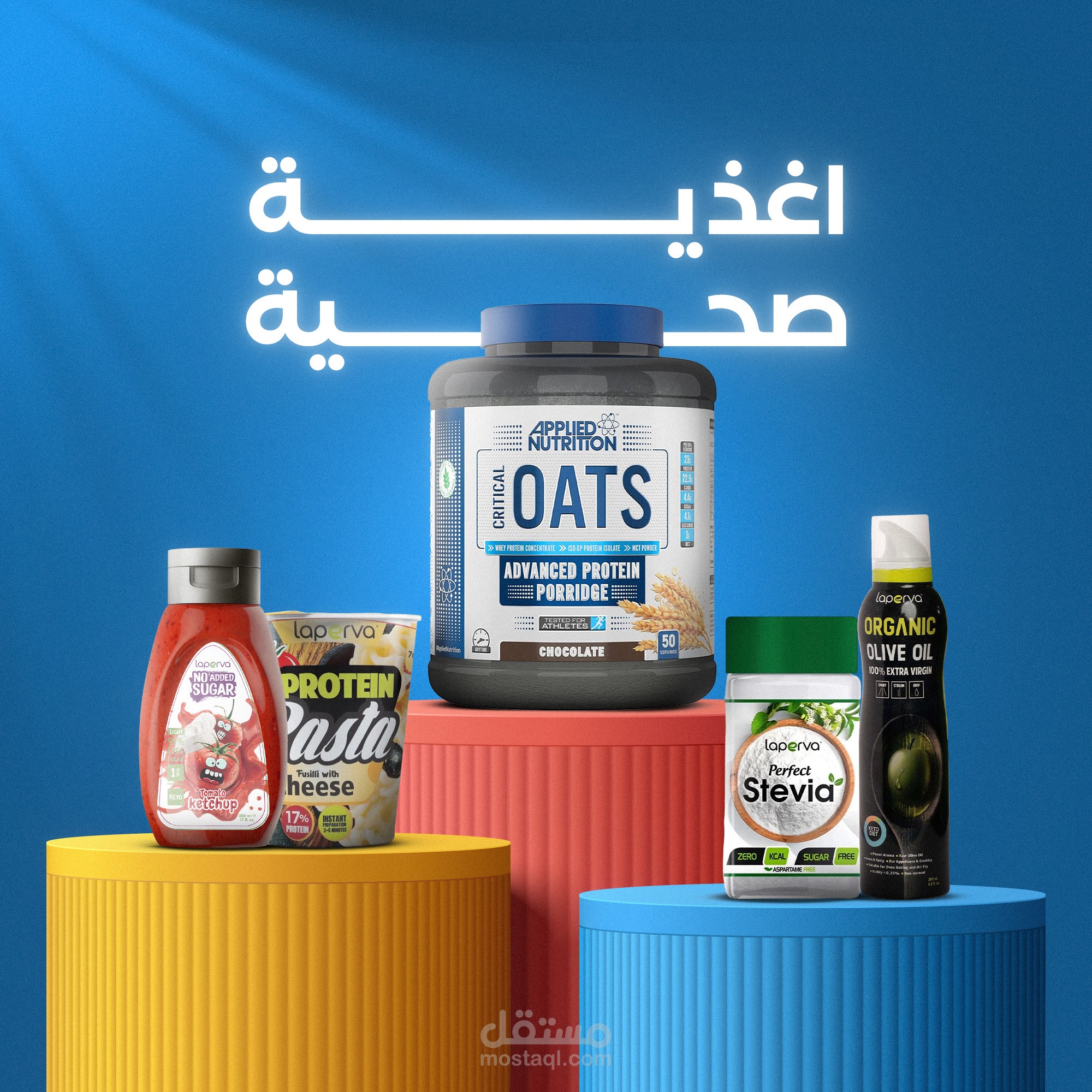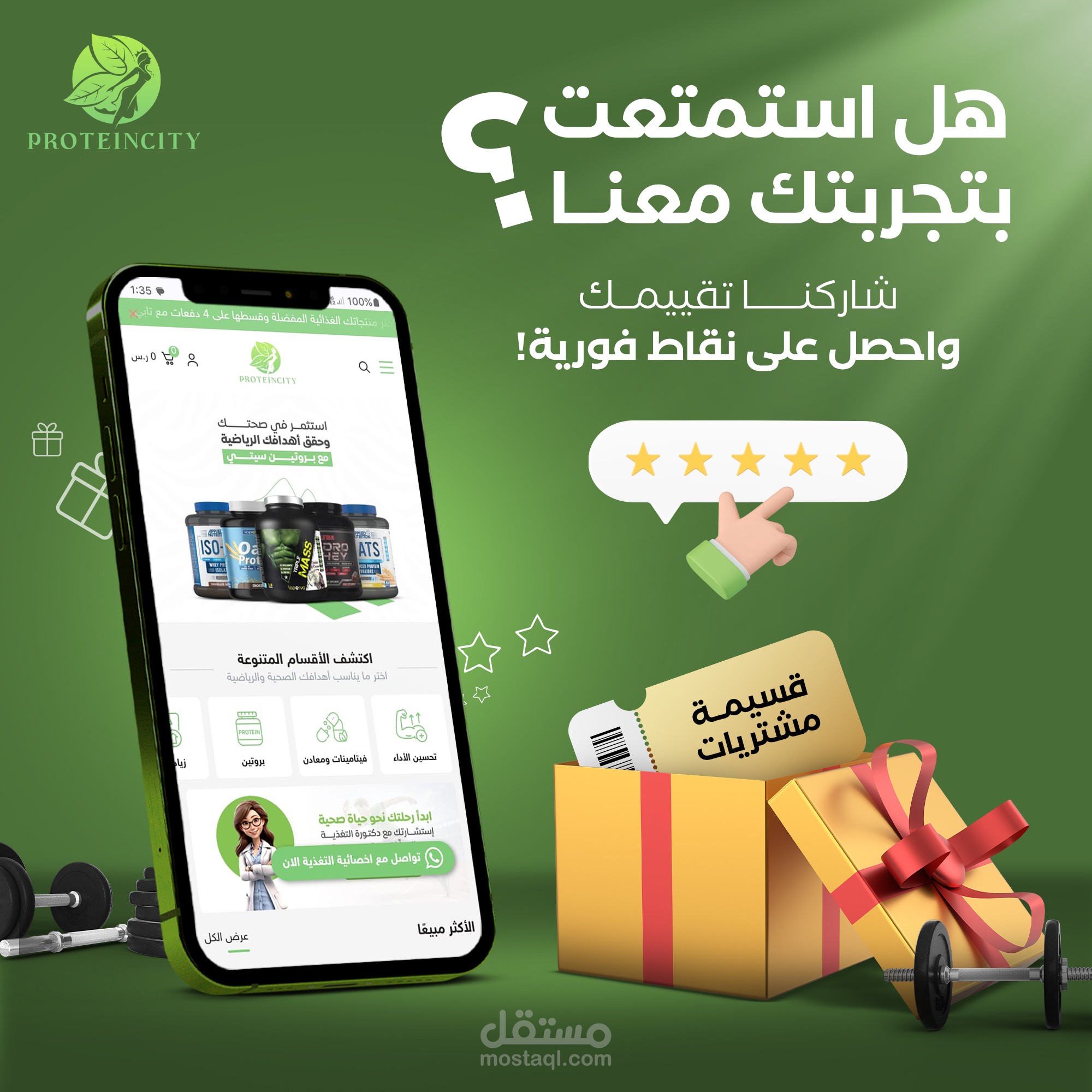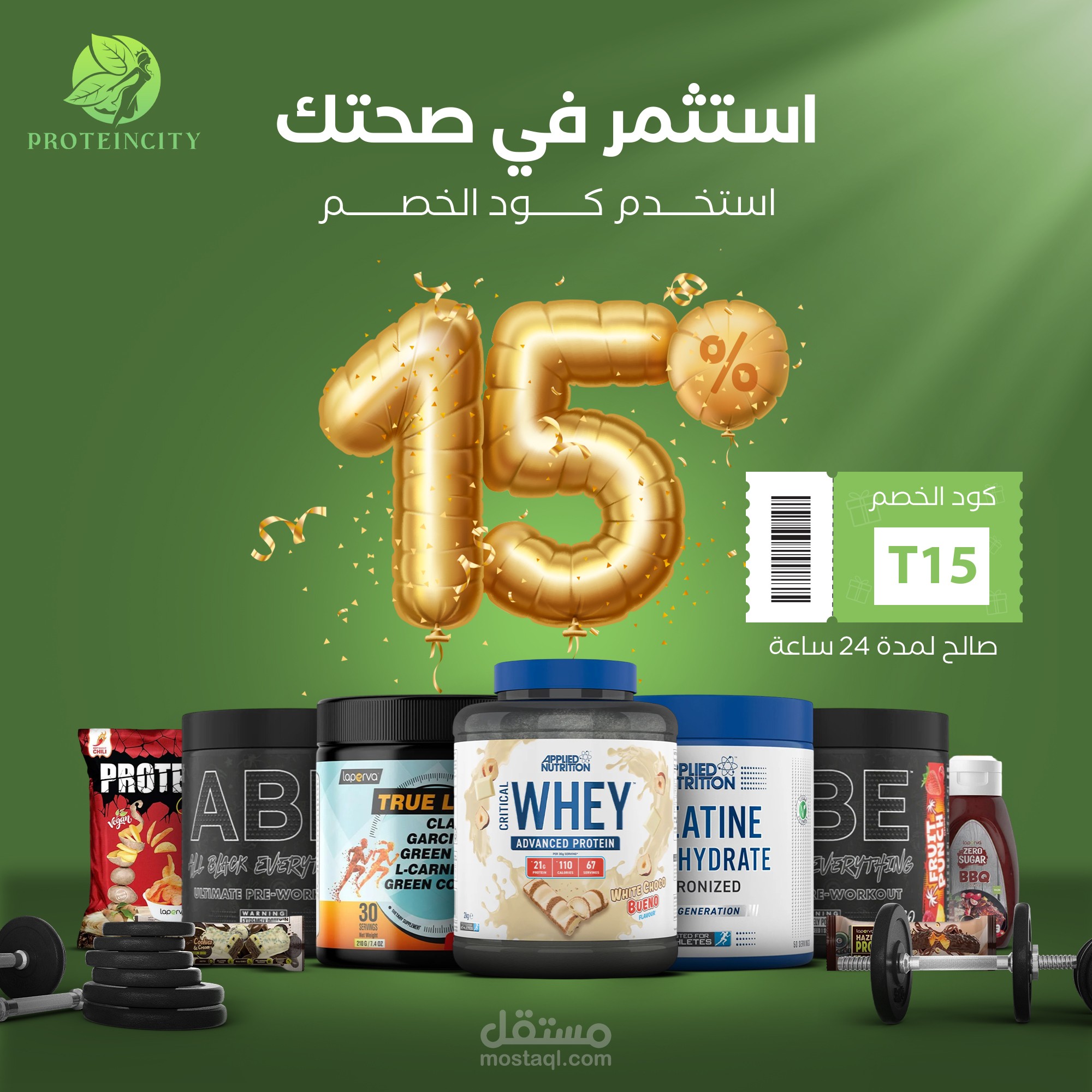 Create social media designs and banners for Protein City, a Saudi store specializing in nutritional supplements and health foods. Protein City always strives to provide the best for its customers by providing certified and safe products that help them achieve their health and fitness goals.