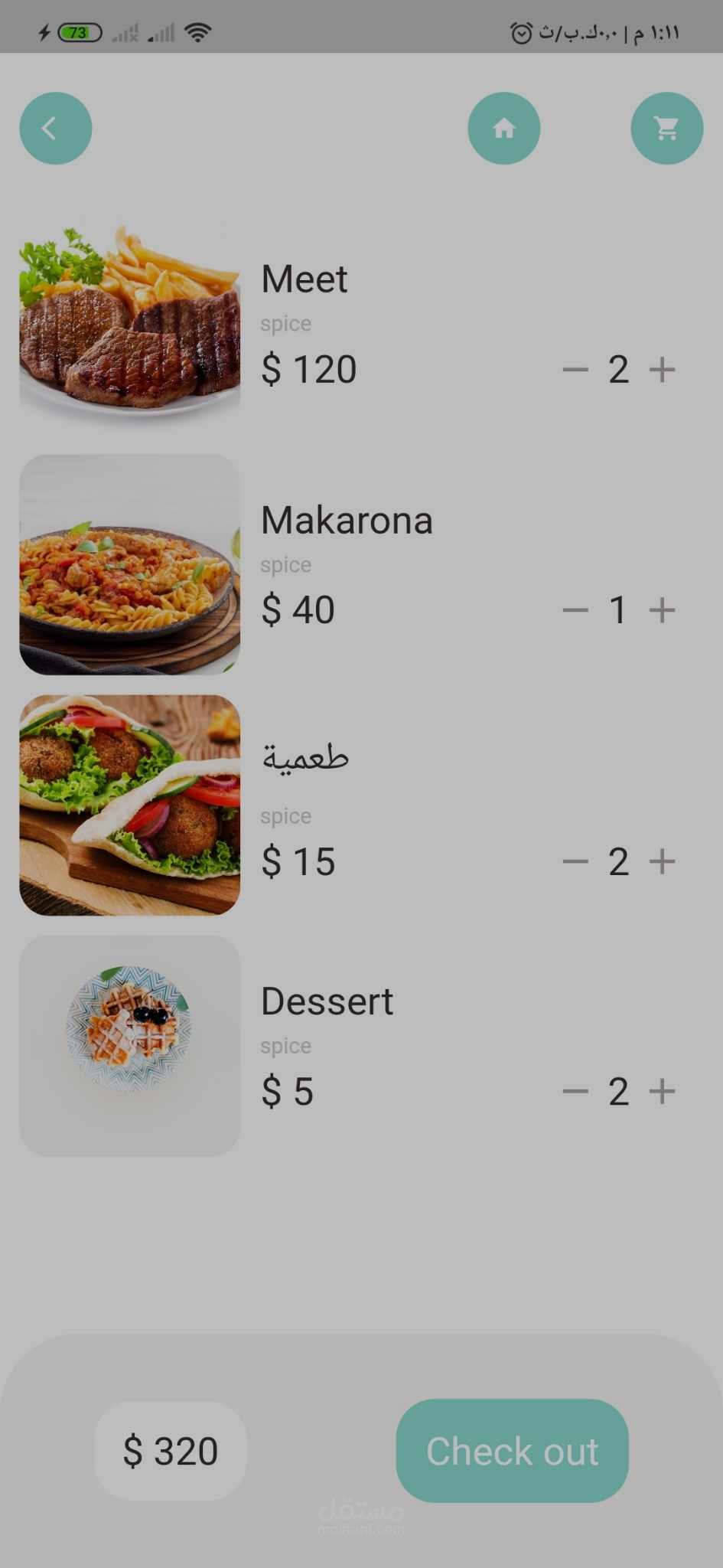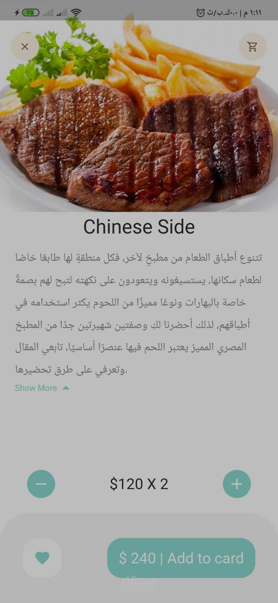 تطبيق موبايل لعرض وتوصيل الطعام، يتيح للمستخدمين استكشاف وجبات مختلفة بناءً على الموقع والتقييم والزمن المتوقع للتوصيل. يتميز التطبيق بواجهة مستخدم جذابة ومتعددة اللغات (العربية والإنجليزية)، وعرض ديناميكي للأصناف المقترحة.