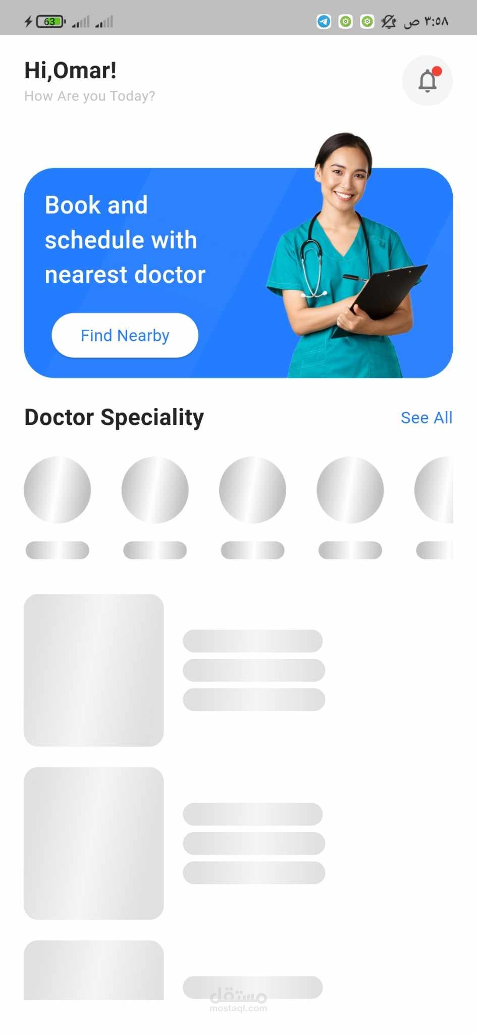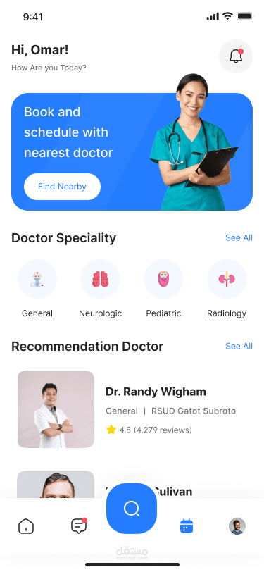 تطوير وتصميم واجهة تطبيق لحجز المواعيد الطبية - Docdoc باستخدام React Native