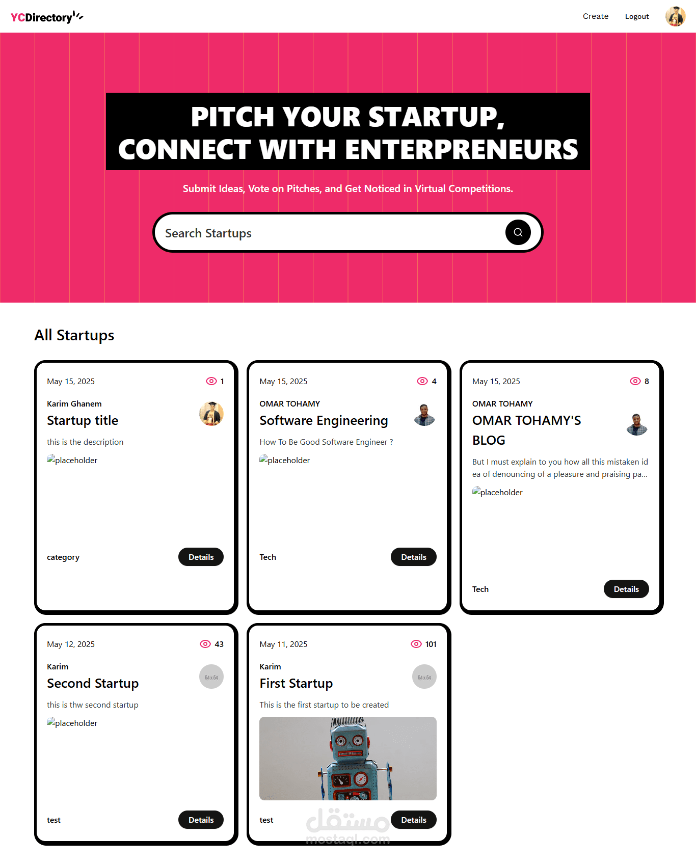 YC Directory هو ويب أب معمول كبلوج مخصوص للشركات الناشئة، معمول بأحدث التقنيات علشان يكون سريع، شكله حلو، وسهل في الاستخدام.