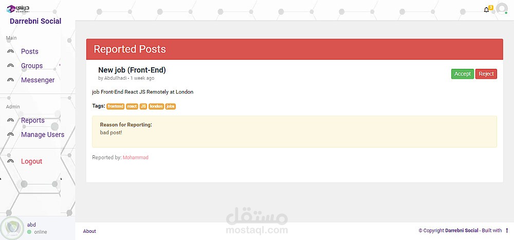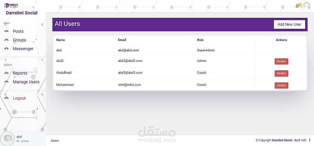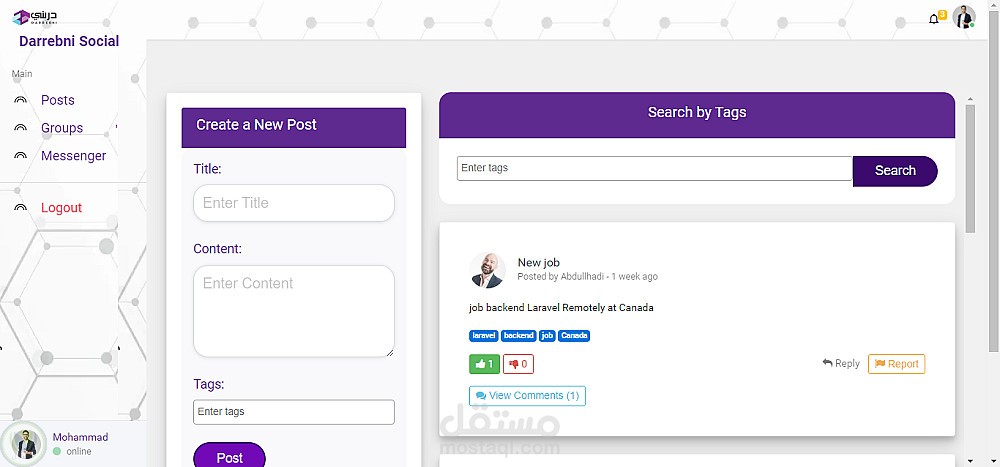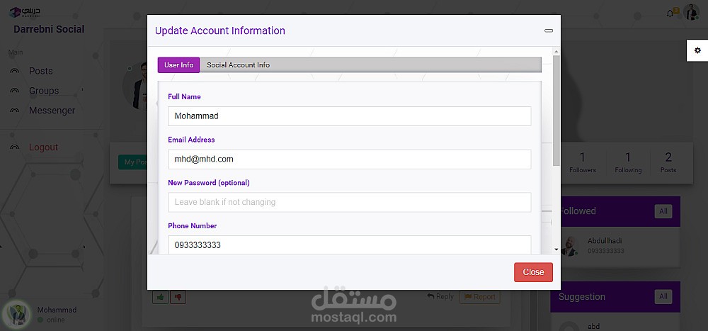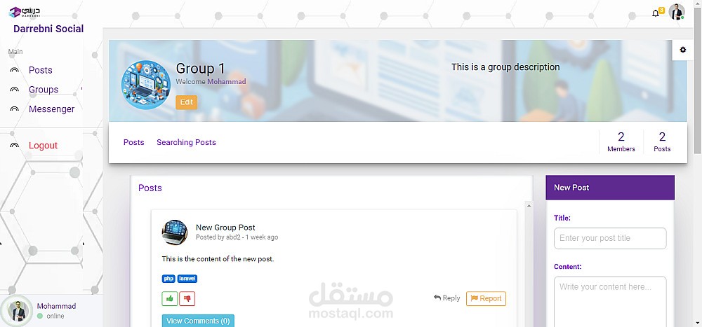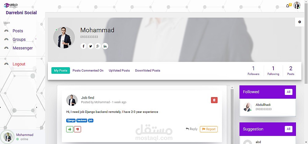 يتيح هذا التطبيق للمتدربين والمدربين نشر المنشورات والتعليق عليها والتفاعل معها والإبلاغ عنها. ويمكن إنشاء المجموعات وإدارتها ومشاركة المنشورات والتفاعل معها والتعليق عليها والإبلاغ عنها داخل المجموعة. كما يمكن البحث عن المنشورات عن طريق الوسوم. ويمكن للمستخدمين إدارة ملف تعريف حسابهم ومتابعة الآخرين والتواصل معهم عبر الرسائل. كما يحتوي التطبيق على لوحة تحكم إدارية للنظام لإدارة المستخدمين والتقارير وإضافة المستخدمين يدويًا. كما أن التطبيق جاهز للعمل والتكامل مع تطبيق الهاتف المحمول.