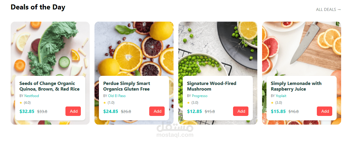 يحتوى على سلة لاضافه المنتجات وحسابها