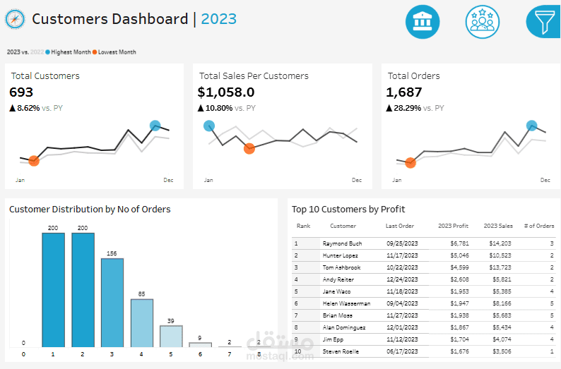 هذه اللوحة تعرض معلومات مهمة عن العملاء، مثل: