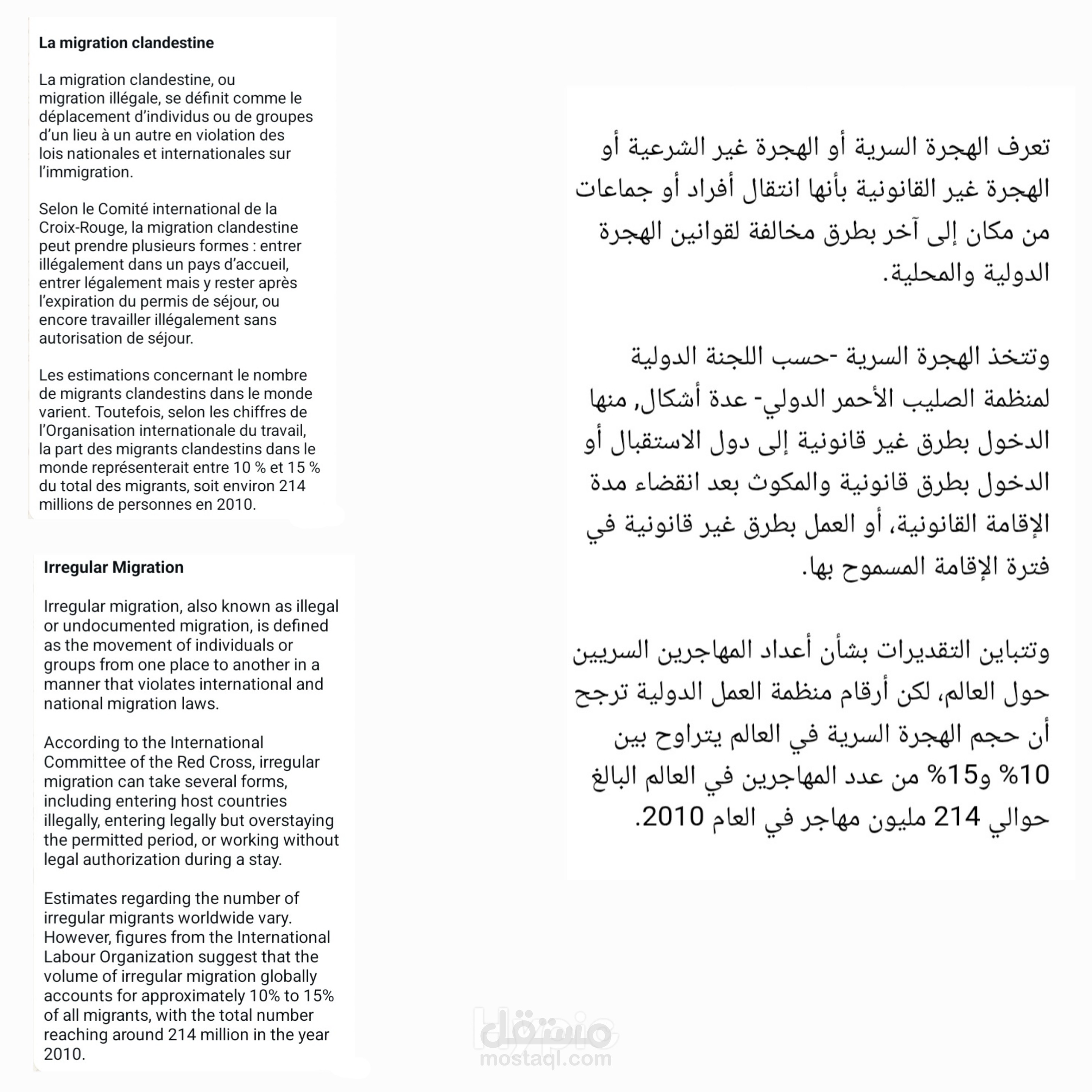 ترجمة نص حول الهجرة السرية من العربية إلى الفرنسية والإنجليزية