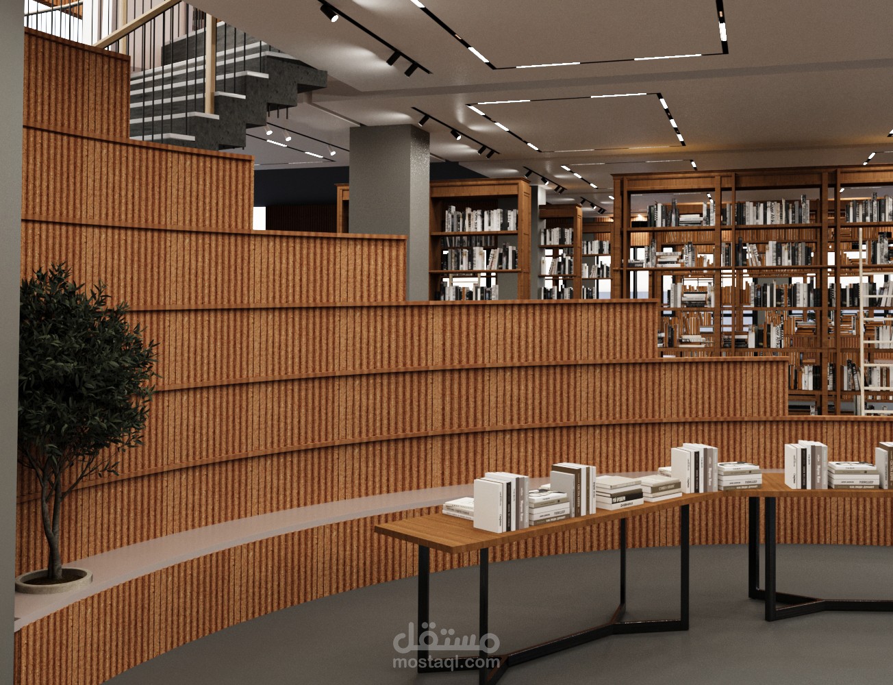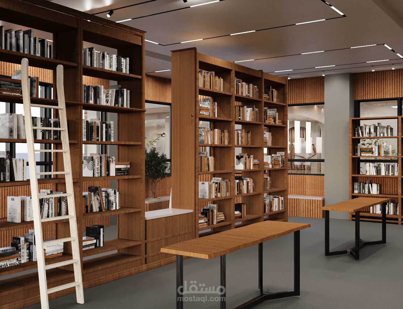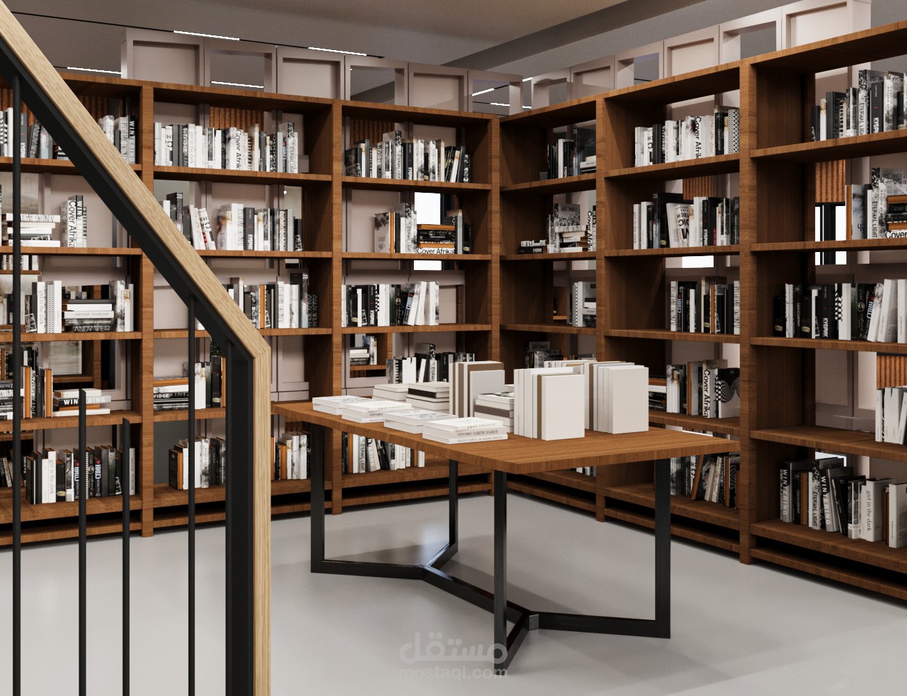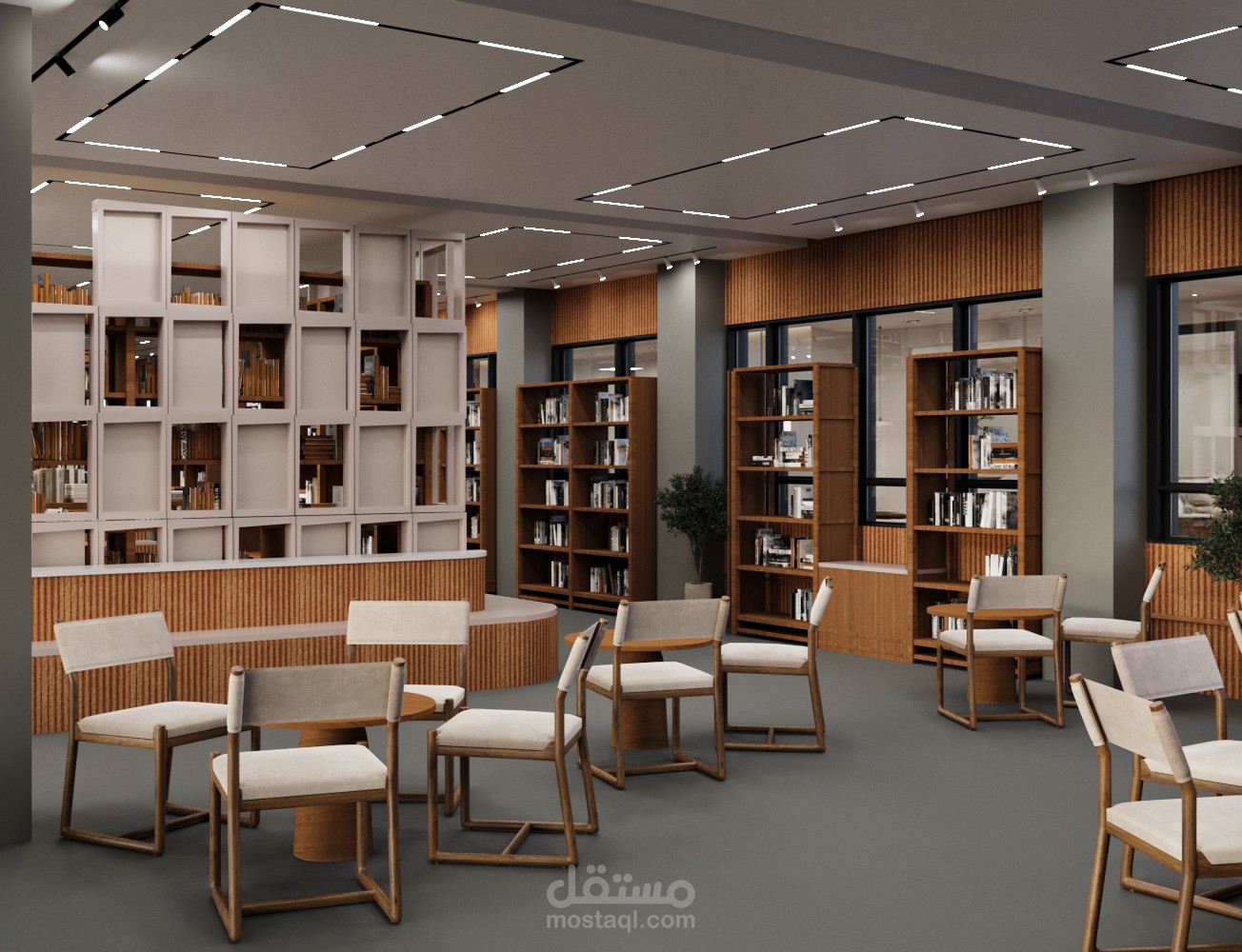 تم تصميم هذا المشروع ليعكس روح المكتبات المعاصرة التي تمزج بين الوظيفة والجاذبية البصرية. يعتمد التصميم على استخدام وحدات عرض مفتوحة بتوزيع مرن ومبتكر، مما يسمح بعرض الكتب بشكل منظم وسهل الوصول إليه من جميع الاتجاهات.