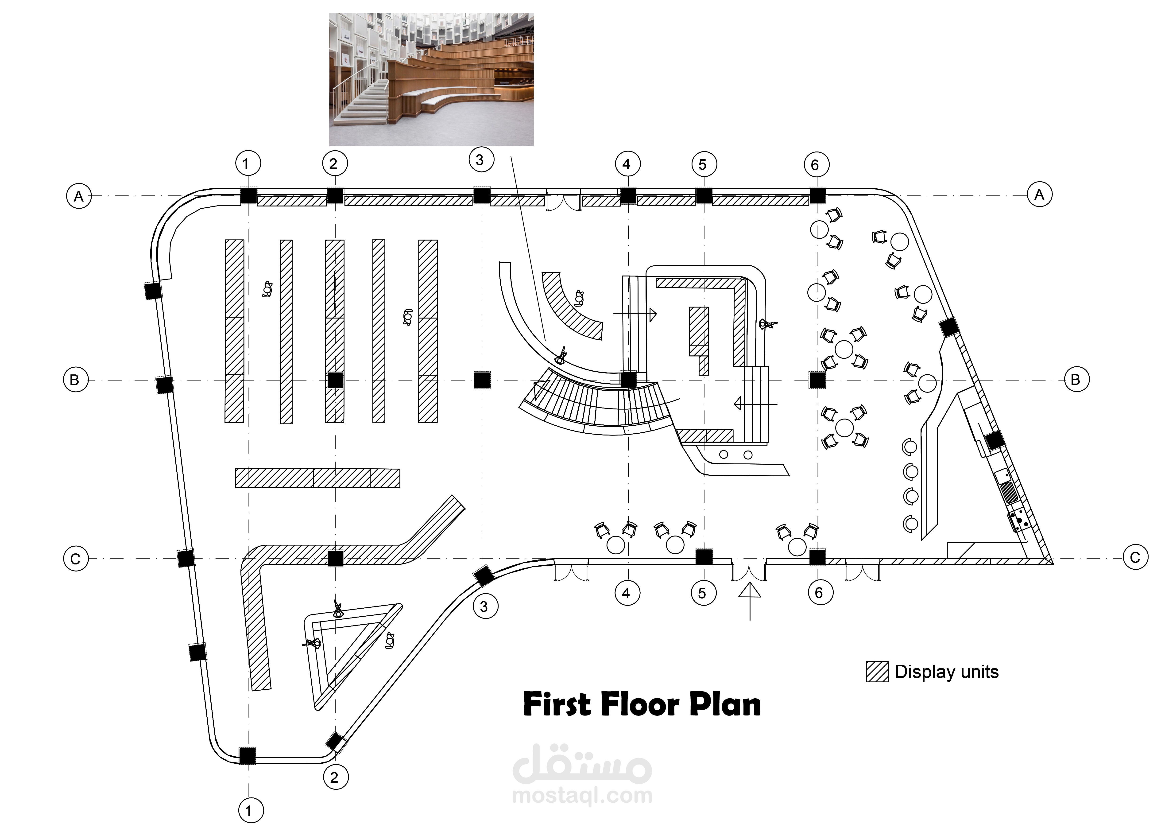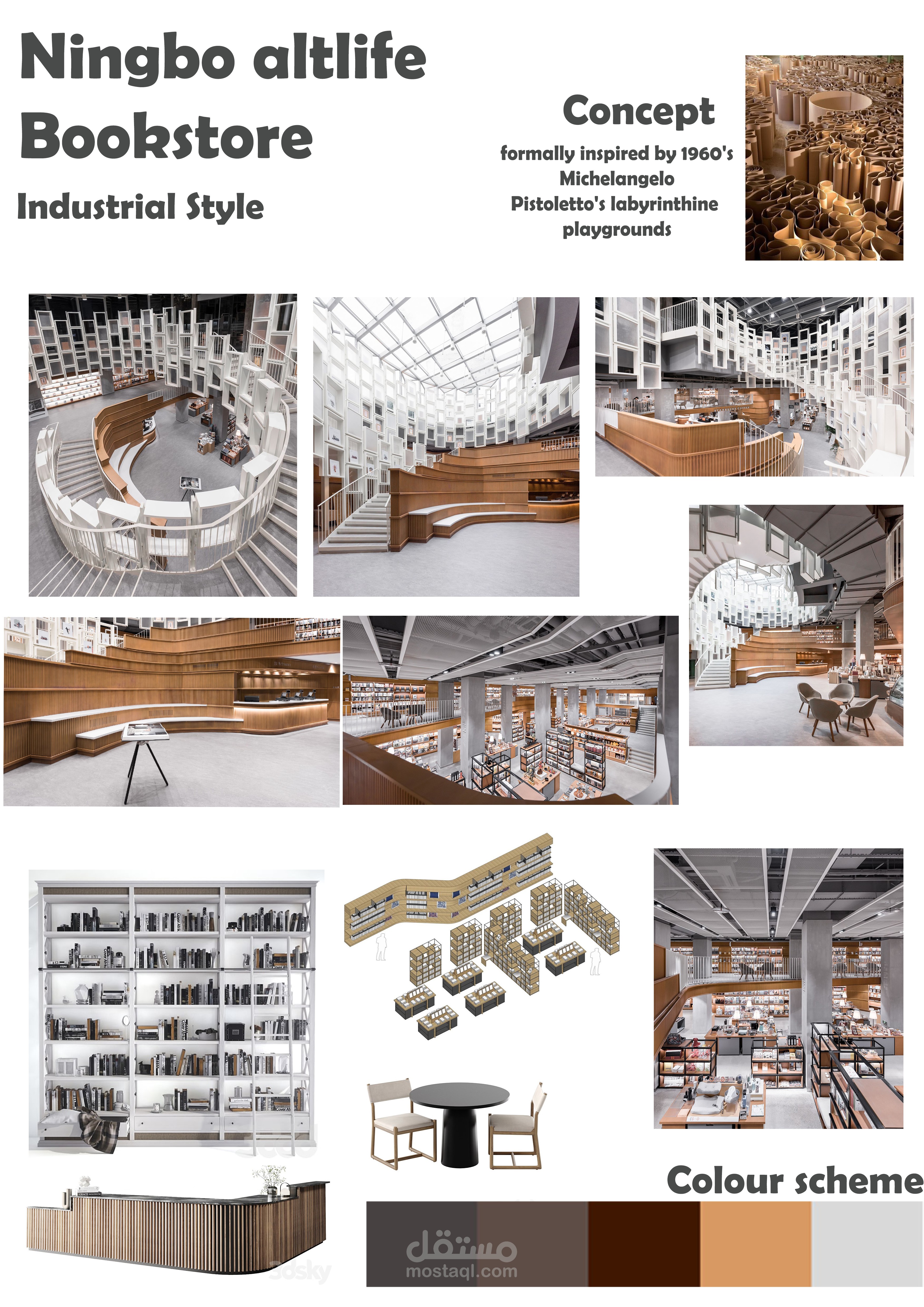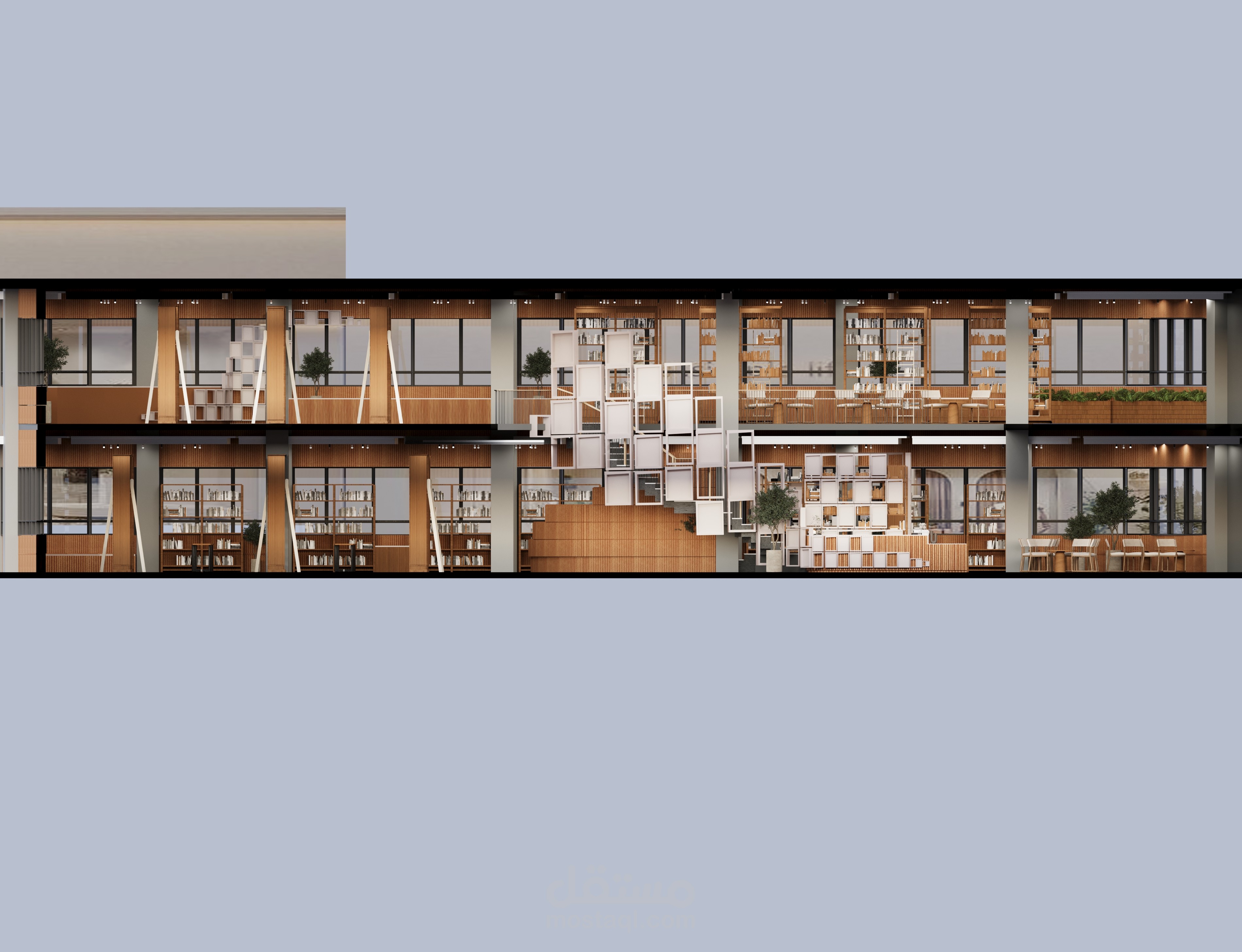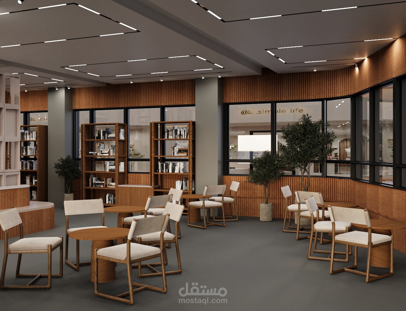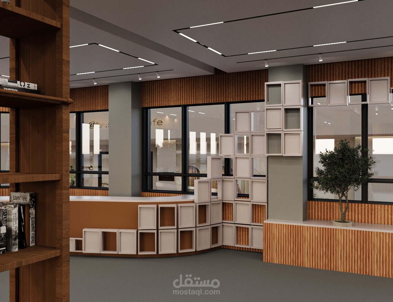 تم تصميم هذا المشروع ليعكس روح المكتبات المعاصرة التي تمزج بين الوظيفة والجاذبية البصرية. يعتمد التصميم على استخدام وحدات عرض مفتوحة بتوزيع مرن ومبتكر، مما يسمح بعرض الكتب بشكل منظم وسهل الوصول إليه من جميع الاتجاهات.