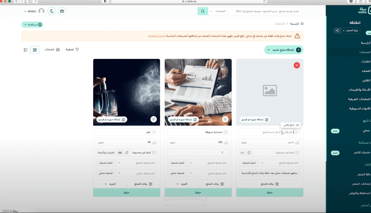 إنشاء وإدارة متجر إلكتروني عبر منصة سلة – إضافة منتجات وربط المتجر بالخدمات الأساسية