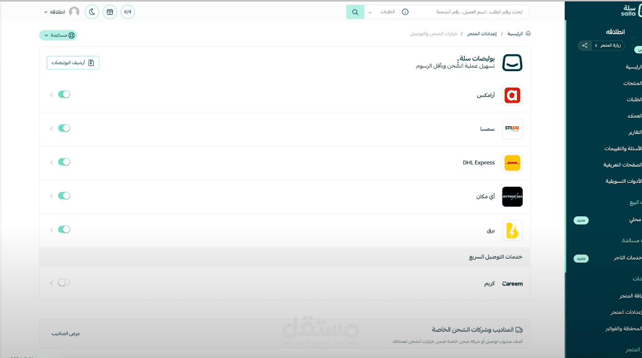 إعداد شركات الشحن وربطها بالمتجر لتوفير خيارات متعددة للعملاء.