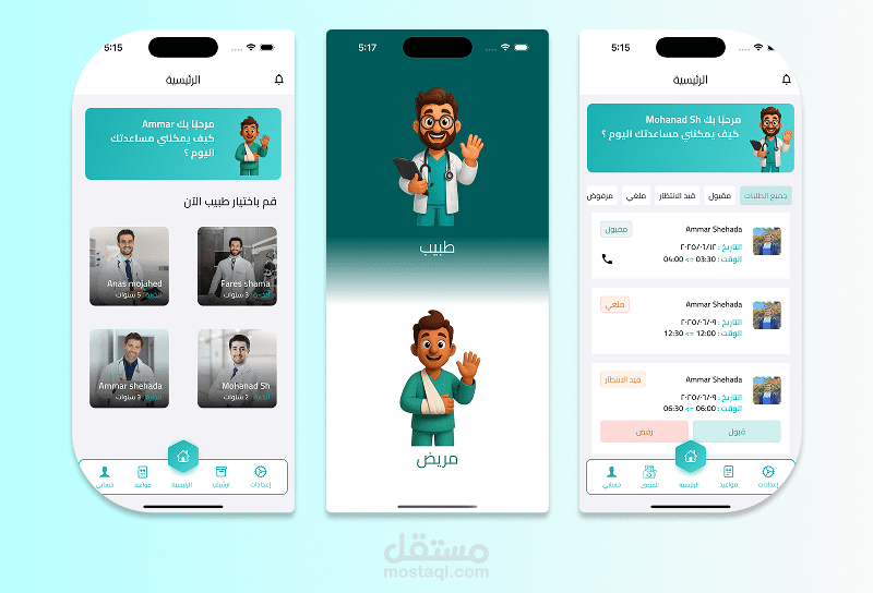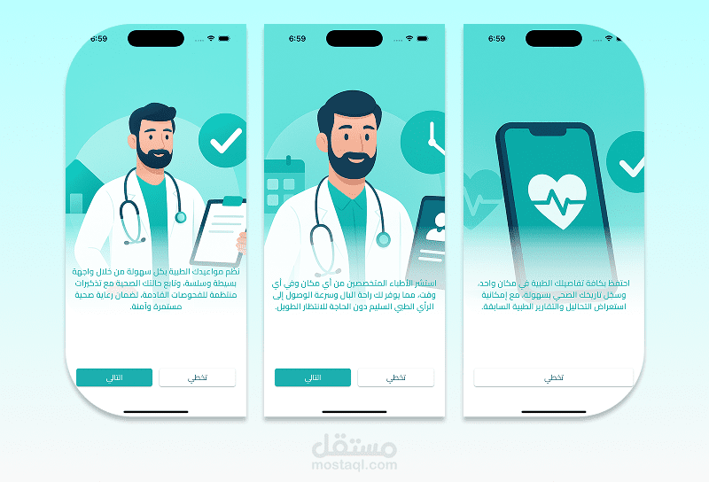 إمكانية تصفّح قائمة الأطباء المسجلين في النظام مع عرض صورهم ومعلوماتهم.