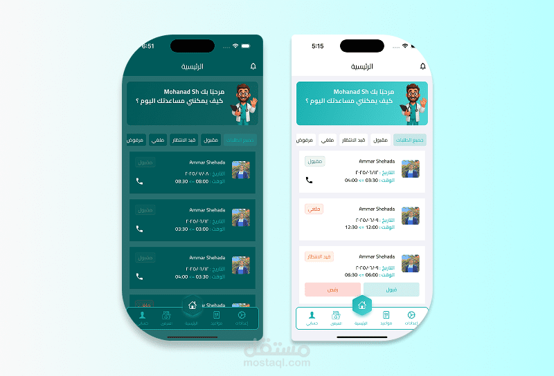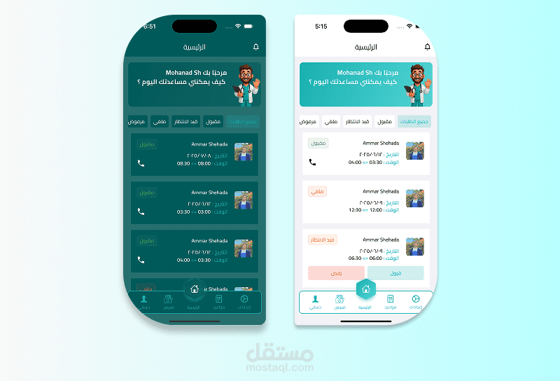 خيارات واضحة لقبول، رفض، أو إلغاء الطلب.