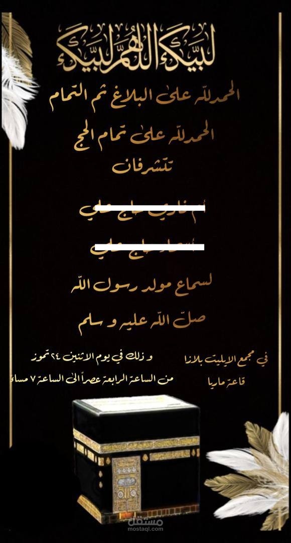 بطاقة دعوة لحفل سماع مولد بعد أداء مناسك الحج