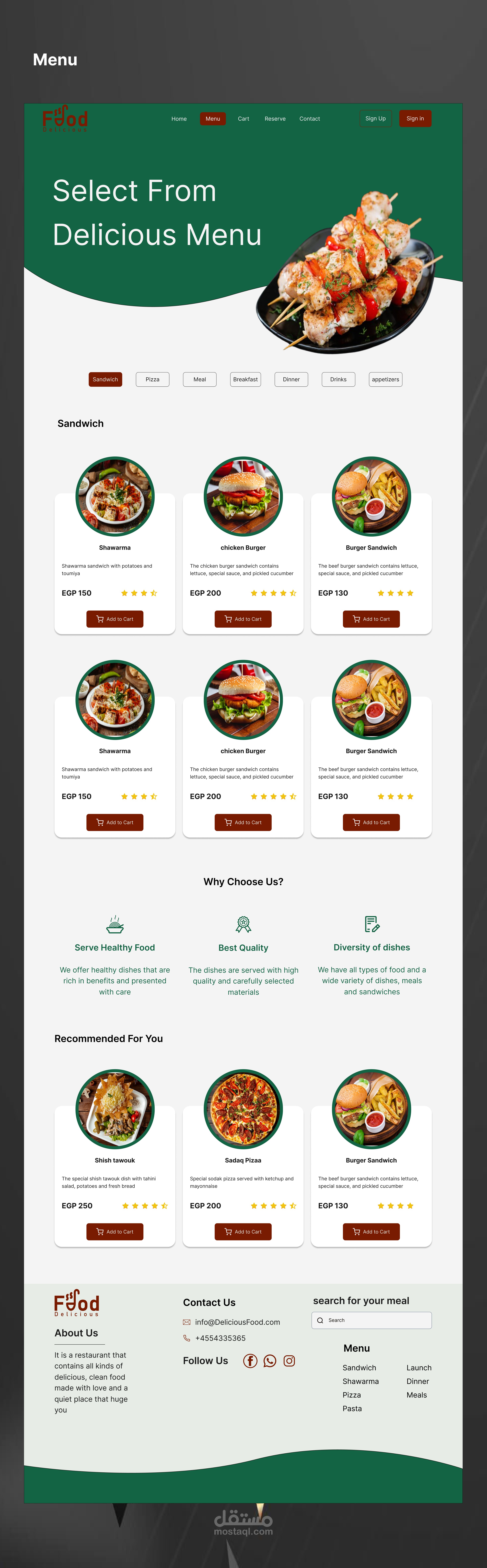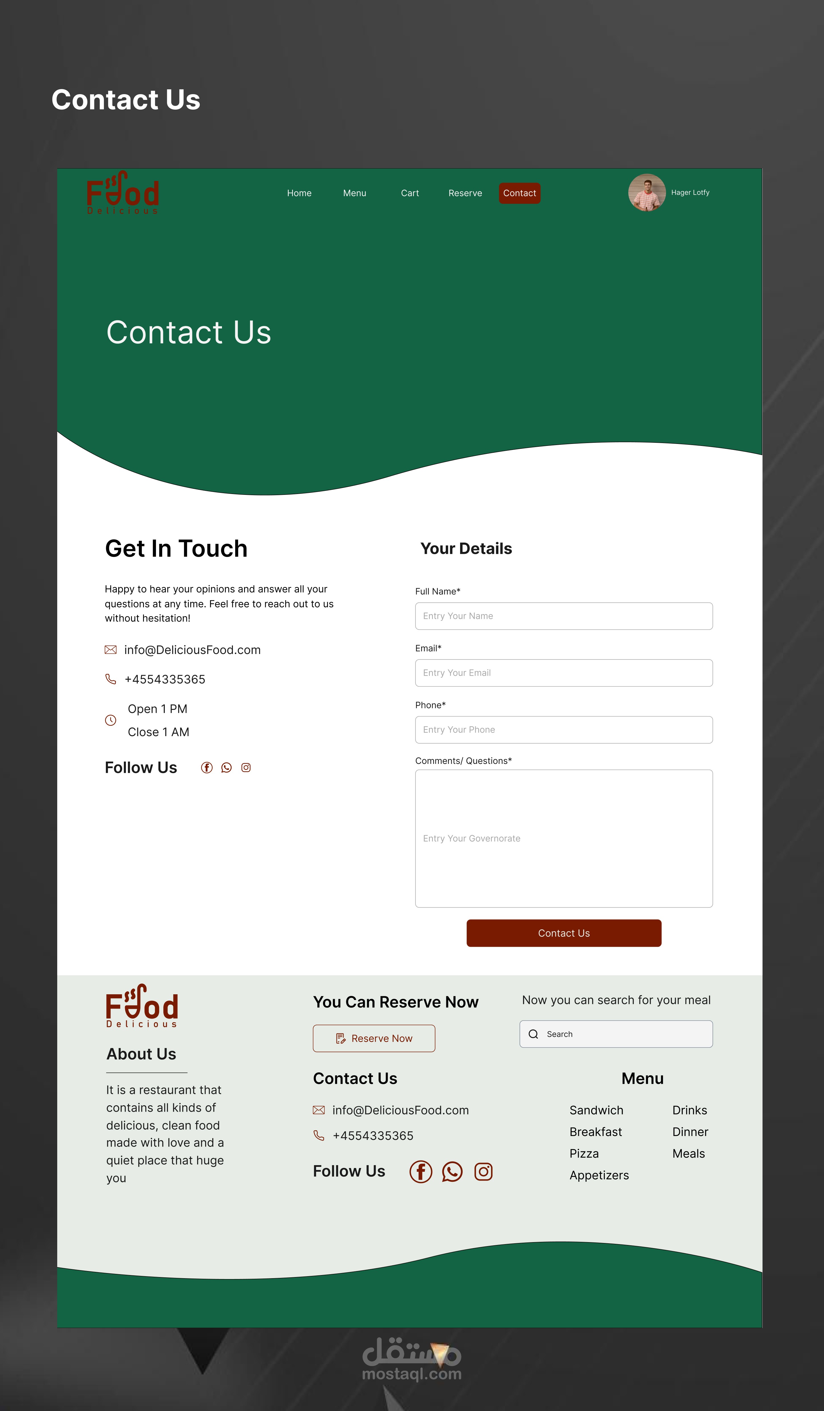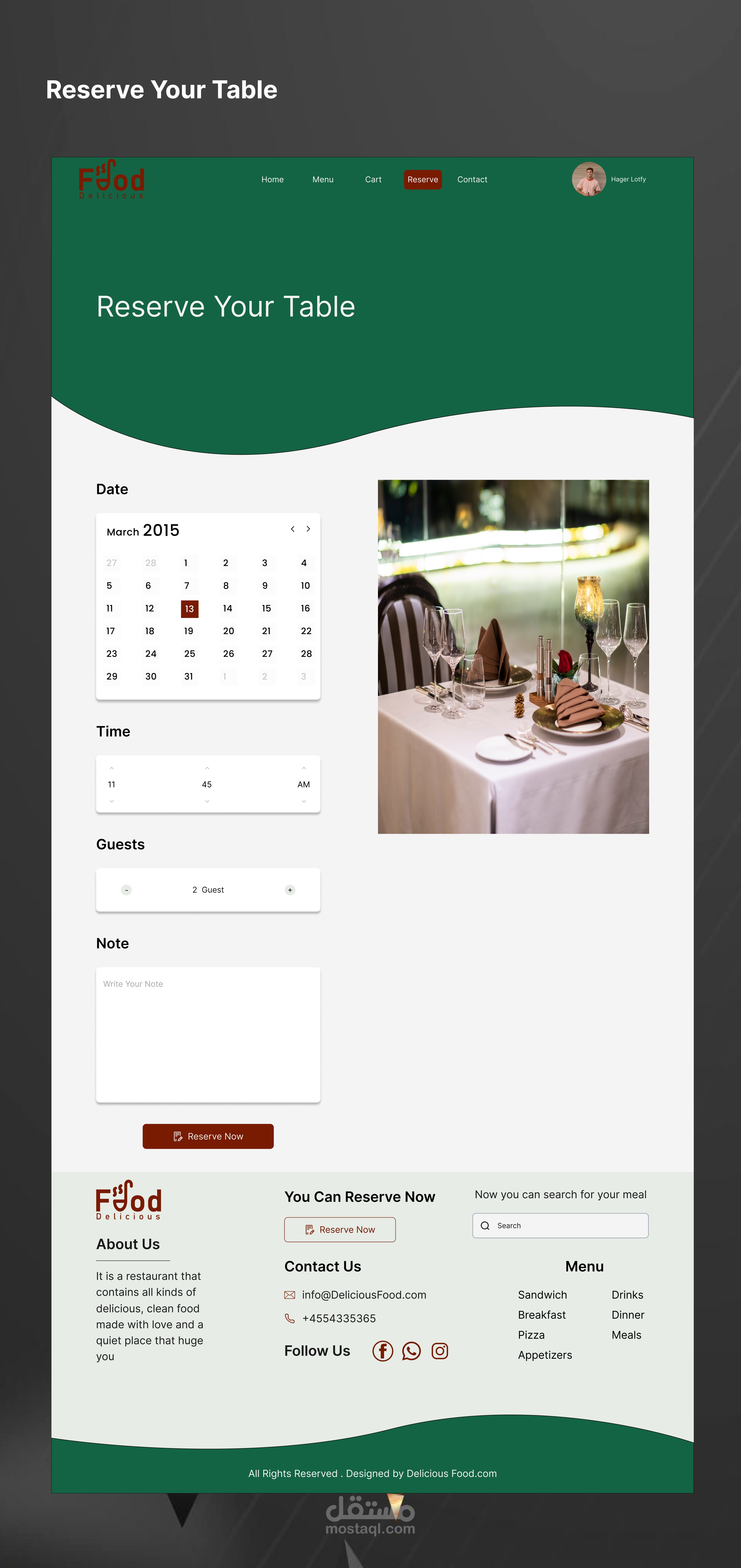وصف العمل: تصميم واجهة مستخدم لموقع إلكتروني لمطعم