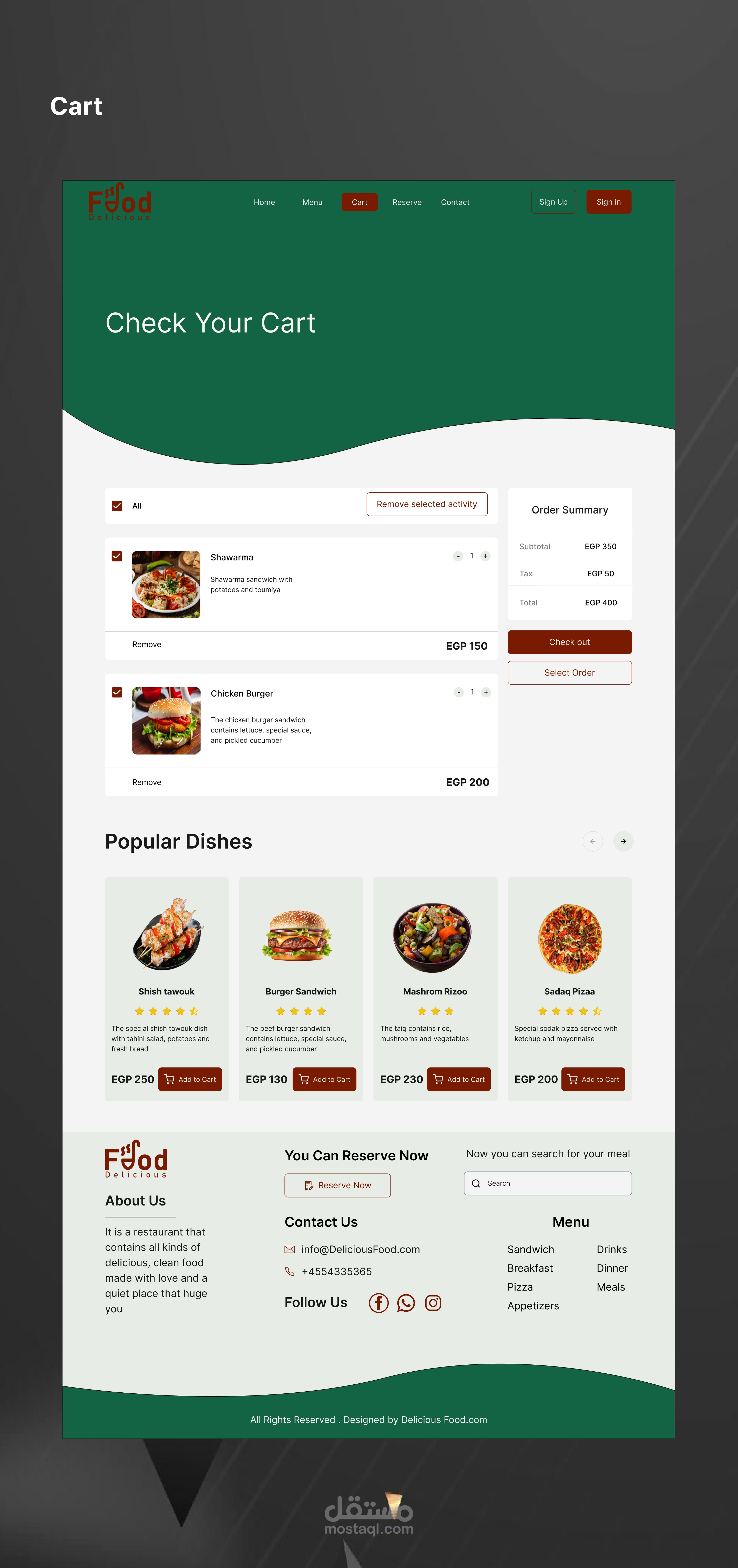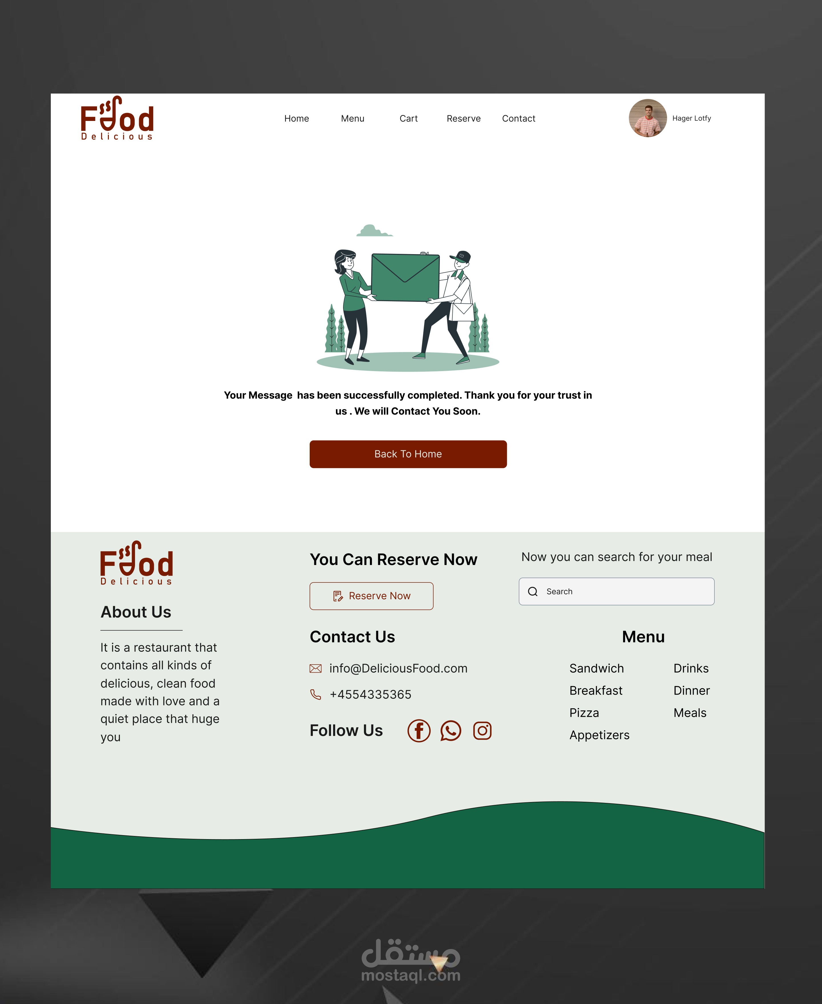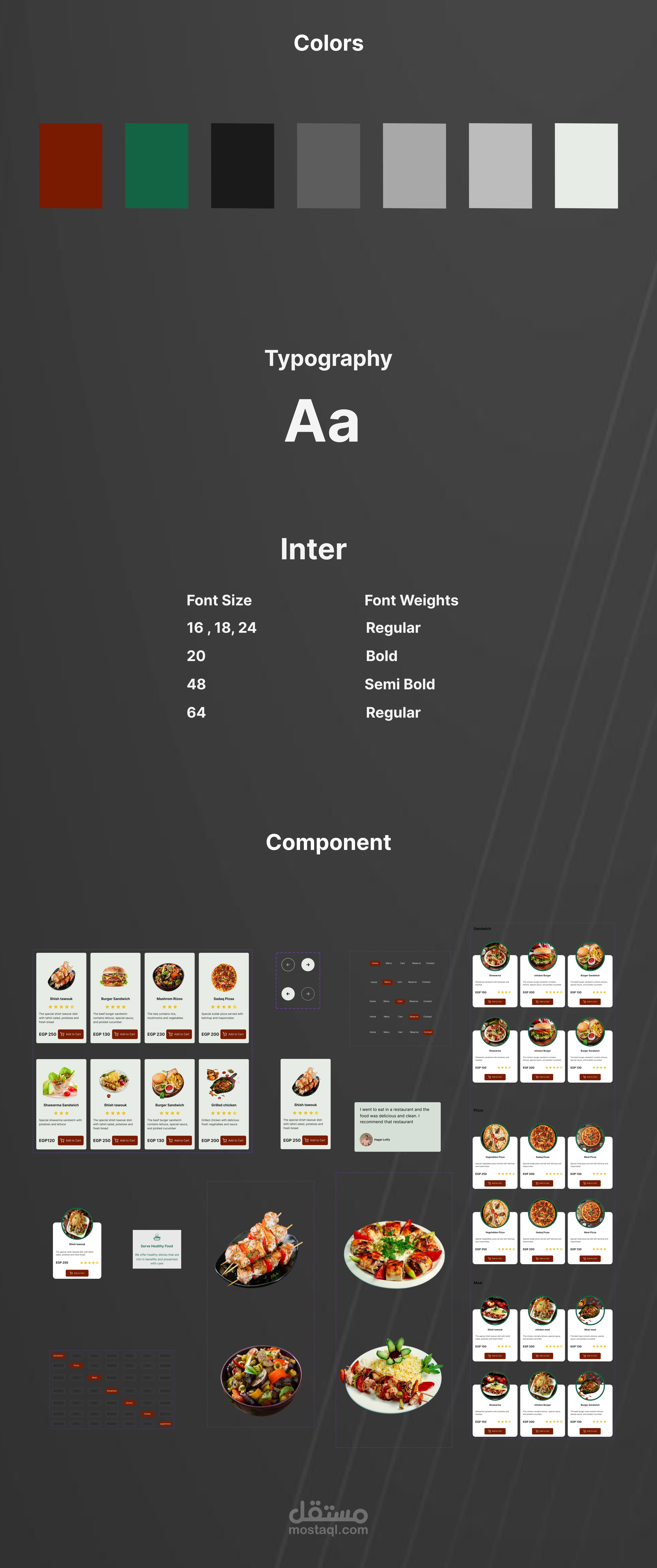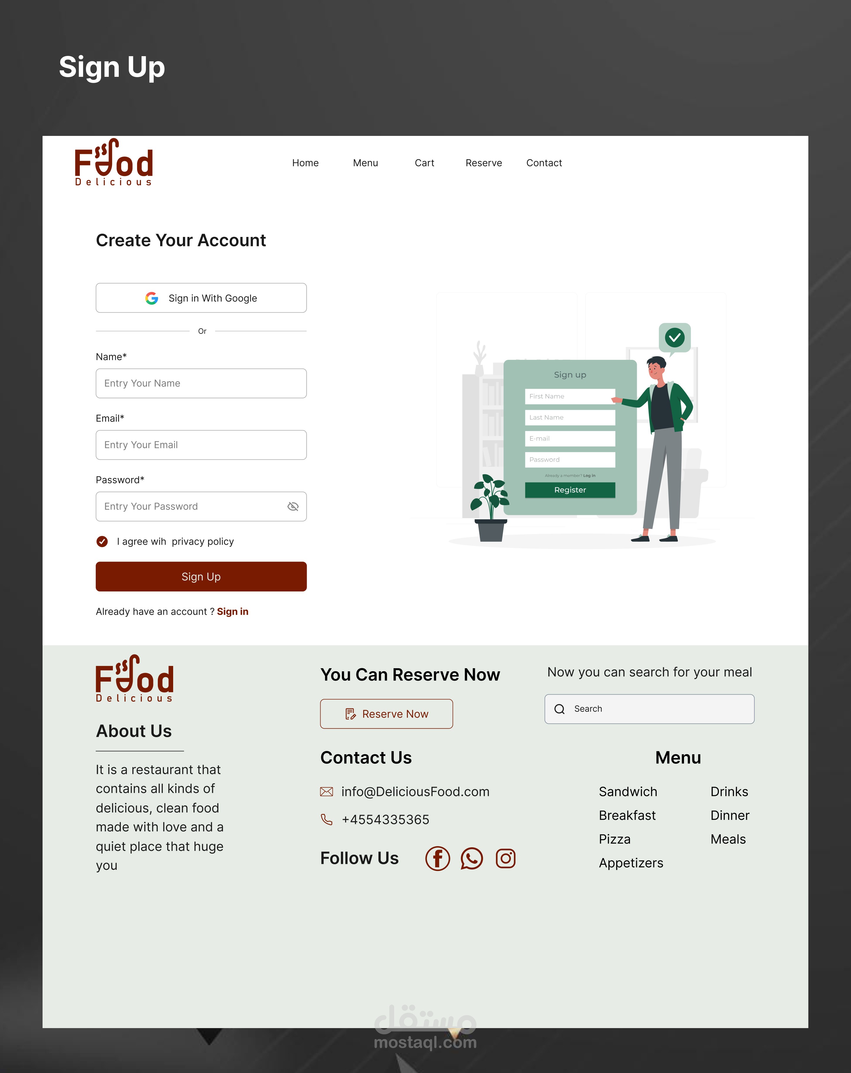 وصف العمل: تصميم واجهة مستخدم لموقع إلكتروني لمطعم