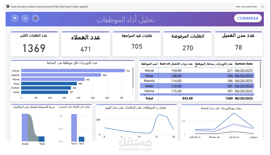 أداء مركز الاتصال، الطلبات، نشاط الموظفين، وسلوك العملاء.