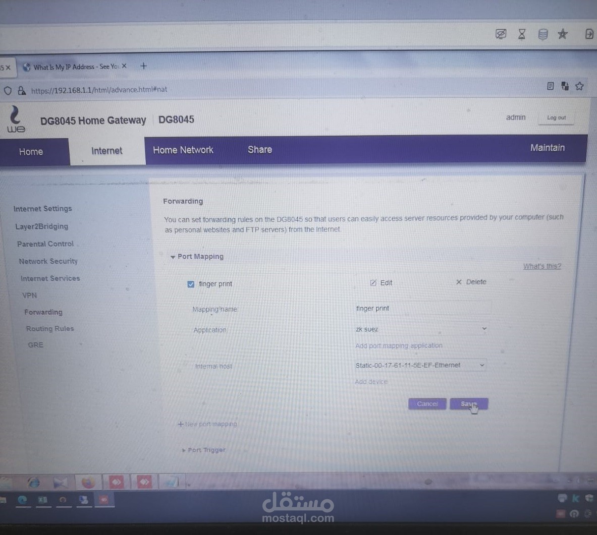 2- تم عمل اعدادات port forward على الراوتر.