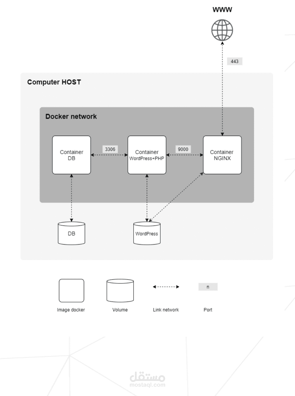 في هذا المشروع، ستقوم بإنشاء بنية تحتية لخادم باستخدام تقنيات الحاويات (Docker) مع التزام كامل بمبادئ البنية التحتية ككود (Infrastructure as Code). الهدف هو إعداد عدة خدمات مثل Nginx، WordPress، وMariaDB بطريقة آمنة، منظمة، وقابلة للتوسع، باستخدام Docker Compose.