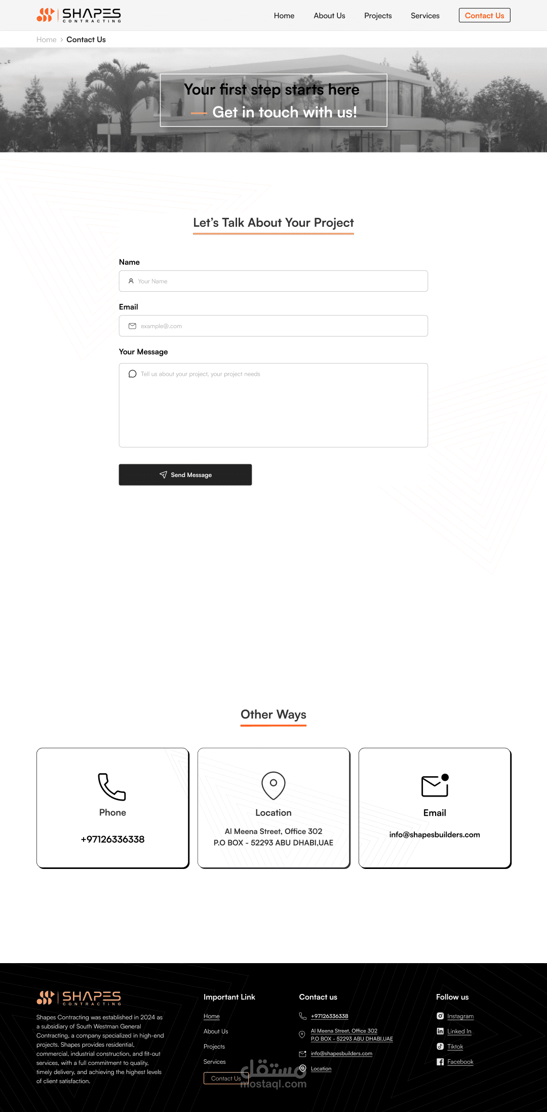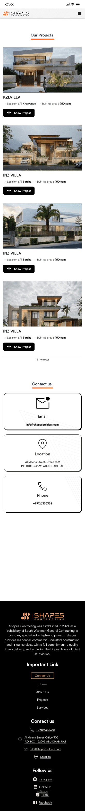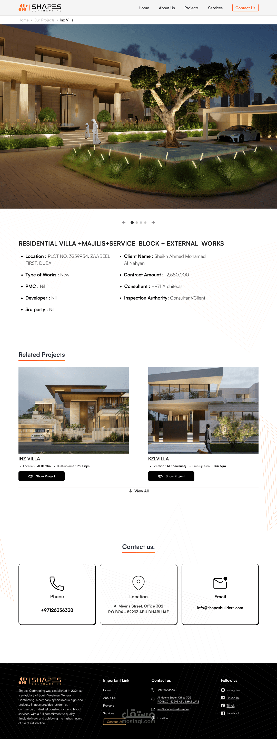 Shapes Contracting was established in 2024 as a subsidiary of South Westman General Contracting, a leader in luxury construction projects. The company aims to provide comprehensive services across residential, commercial, and industrial sectors, as well as fit-out works, maintaining high standards of quality and timely delivery to ensure client satisfaction.