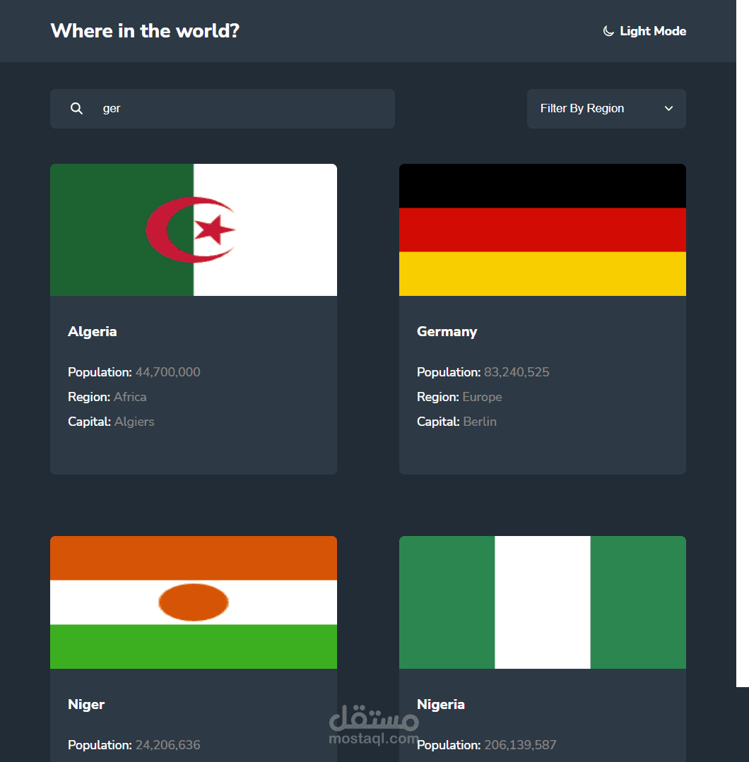 - Filter countries by region.