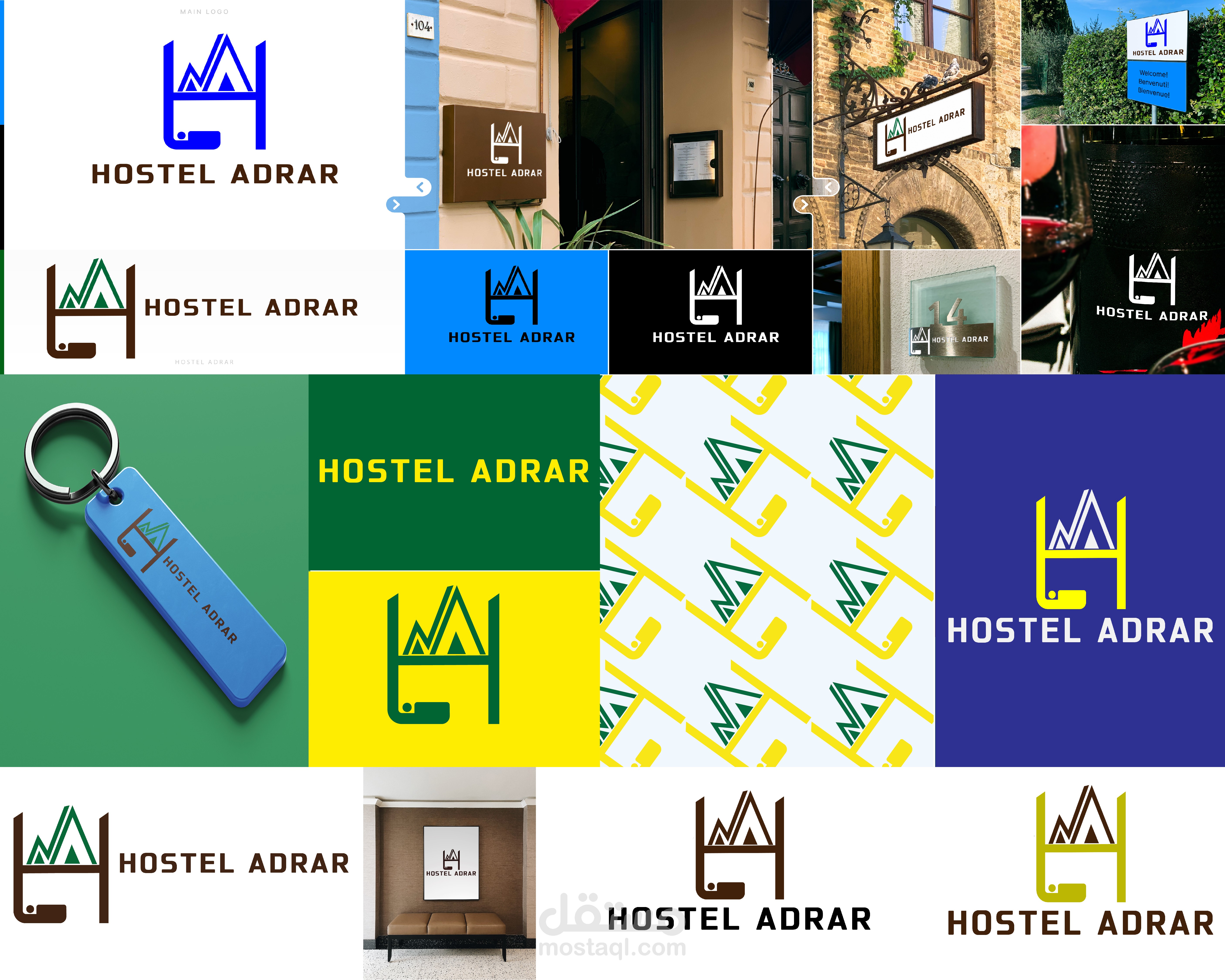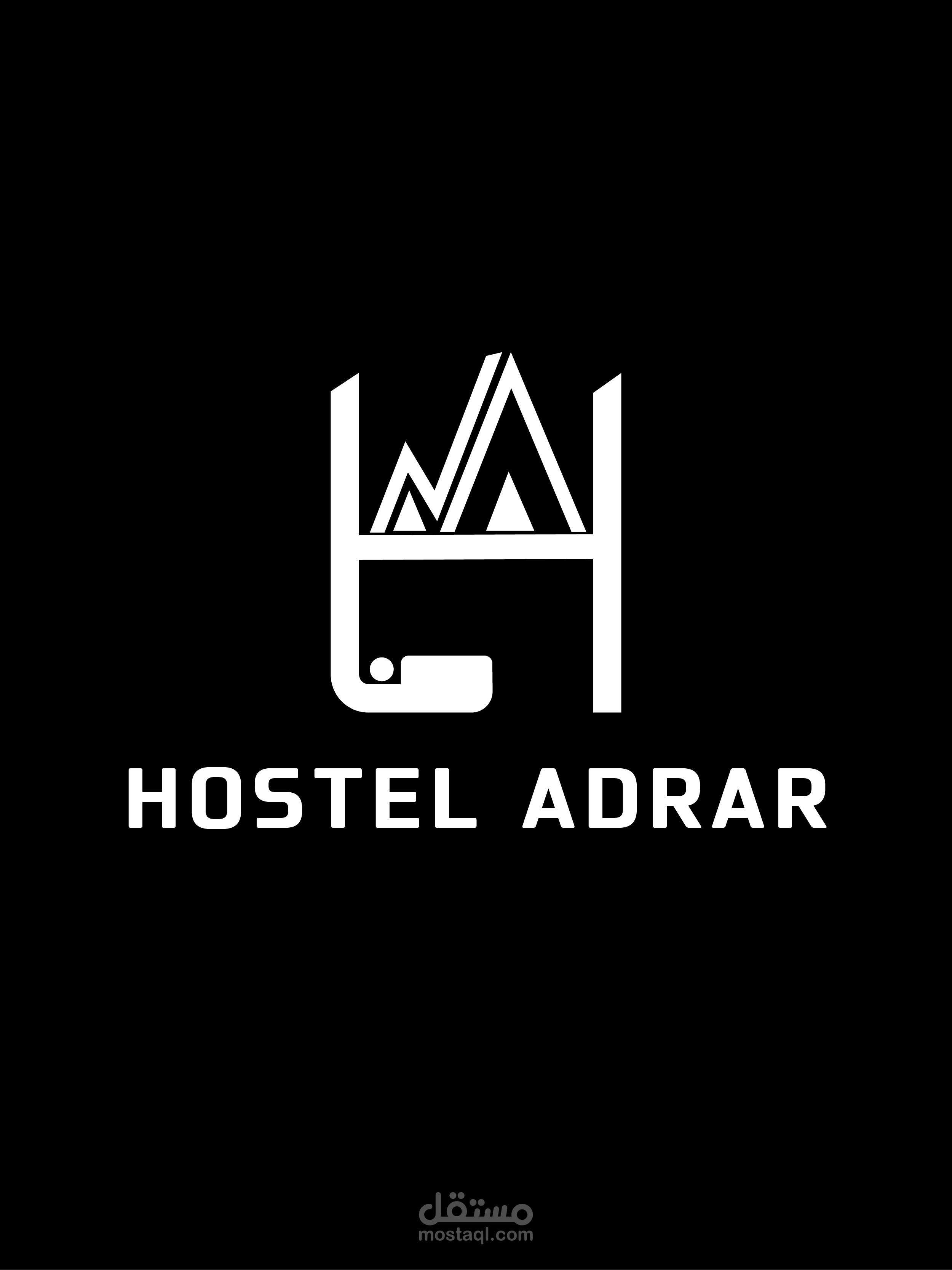 شعار "HOSTEL ADRAR" هو شعار عصري يعكس روح الضيافة والمغامرة في قلب الجبال.