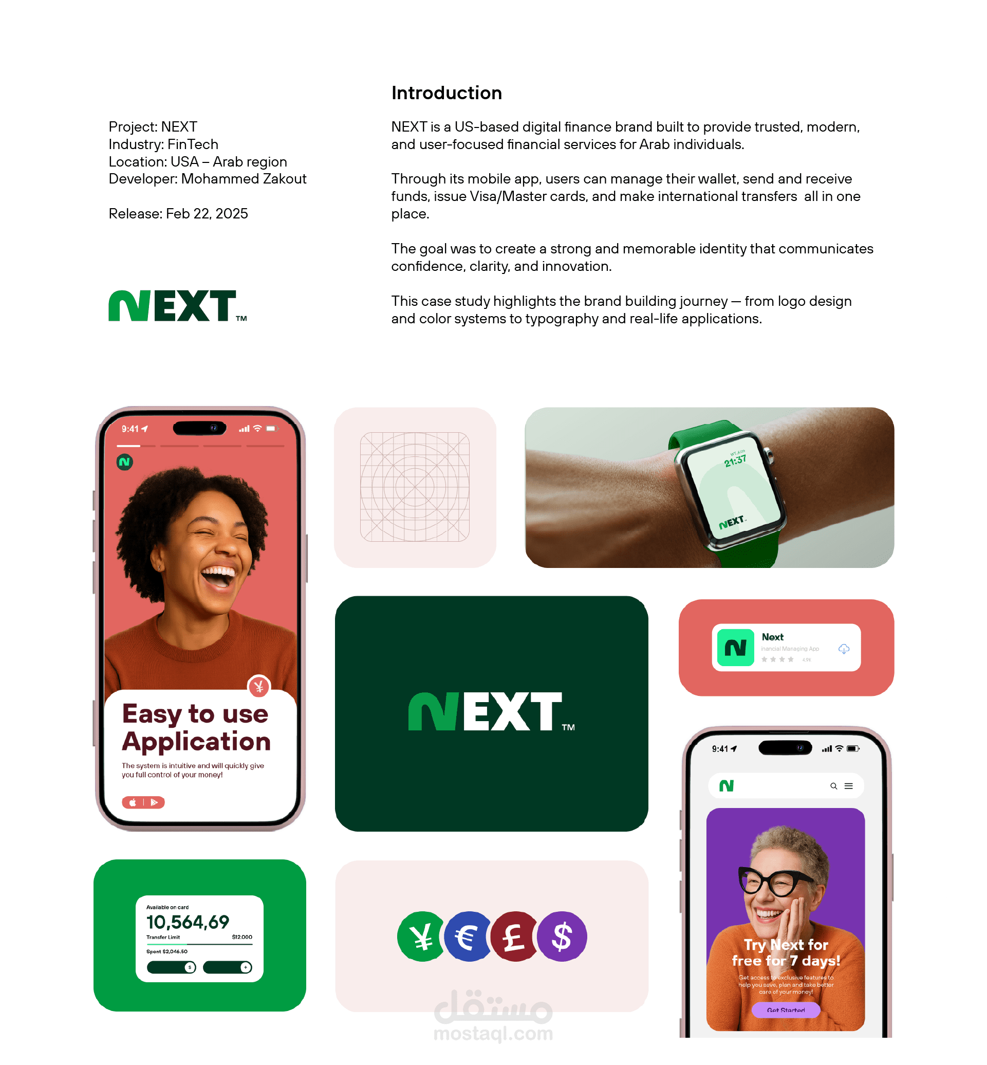 In this project, I developed a full brand identity for a financial brand called NEXT, including logo design, visual system, brand colors, typography, and real-world applications of the identity on various products and mockups.