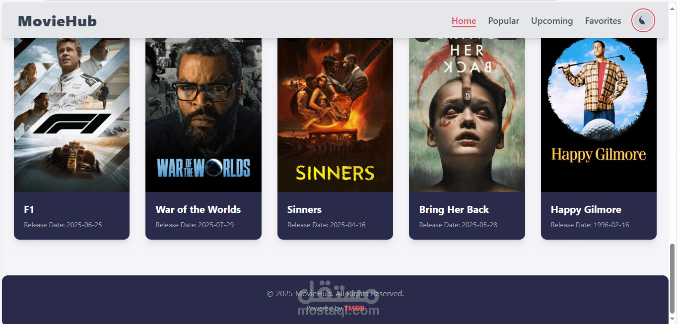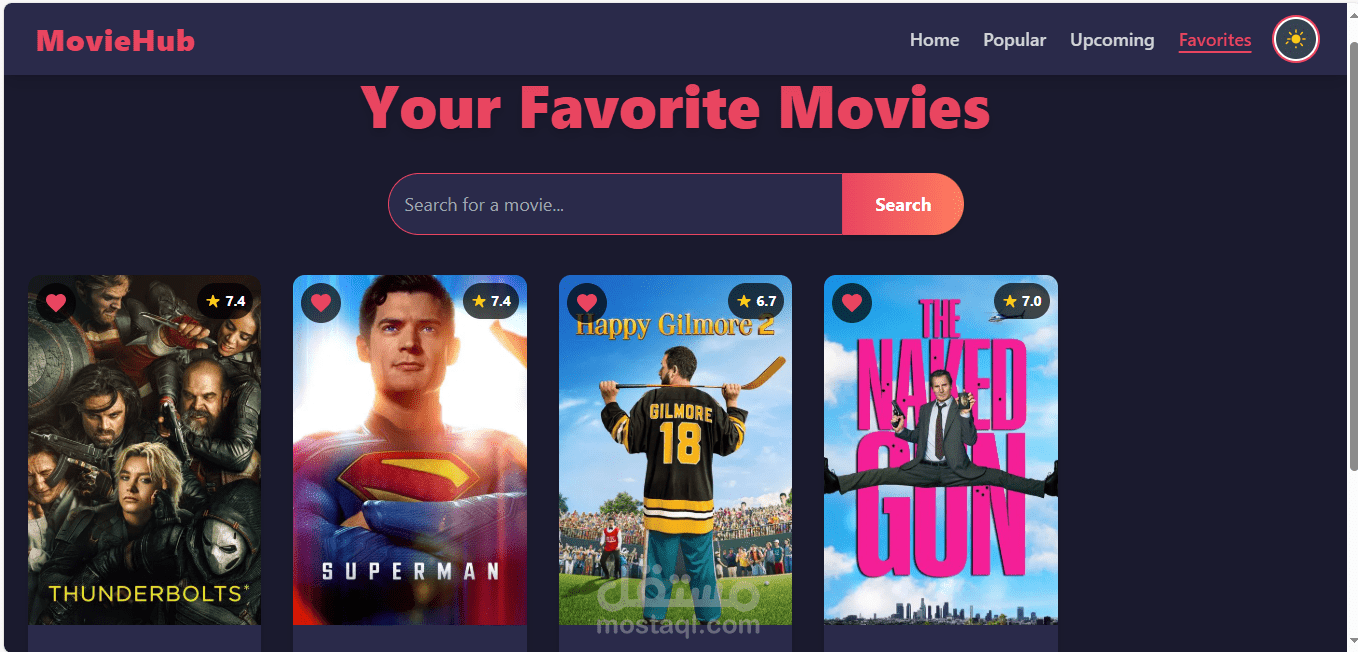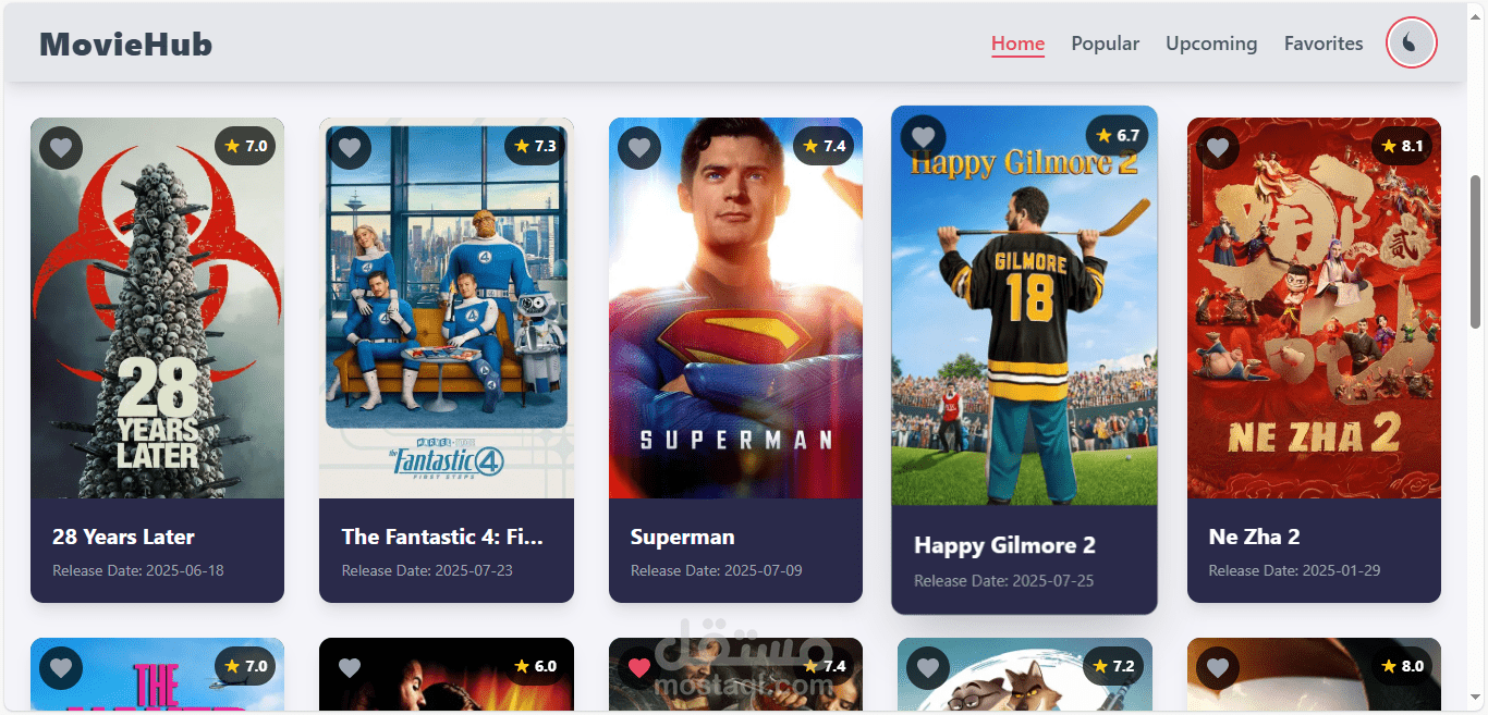 I developed the front-end for "MovieHub," a web application designed to provide users with a modern and intuitive platform for Browse and discovering movies. The project focuses on creating a clean, visually engaging user interface with dynamic content display and key features that enhance the movie-Browse experience.
