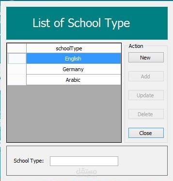 ويتم من خلالها تحديد نوع المدرسة - سواء مدرسة لغات أو مدرسة تجريبة - مع إمكانيه التعديل والحذف والإضافة.