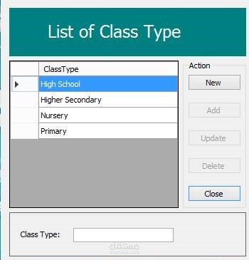 ويتم من خلالها تحديد نوع الفصل، سواء للإبتدائية أو الإعدادية .. وهكذا مع إمكانية الحذف والتعديل
