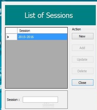 يتم تحديد الفصل الدراسي مثل 2015-2016 مع إمكانية التعديل والإضافة والحذف.