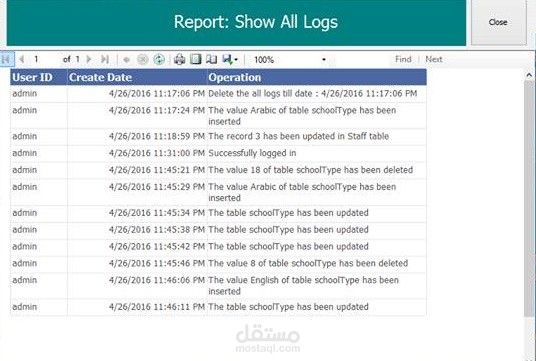 وهو التقرير المسئول عن عرض جميع الحركات سواء إدخال أو حذف أو تعديل في قاعدة البيانات.
