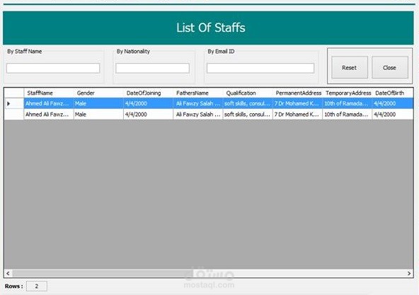 *** ويمكن أخذ نسخة إحتياطية للبرنامج عن طريق الضغط على Backup button الموجود في الـ Main Form