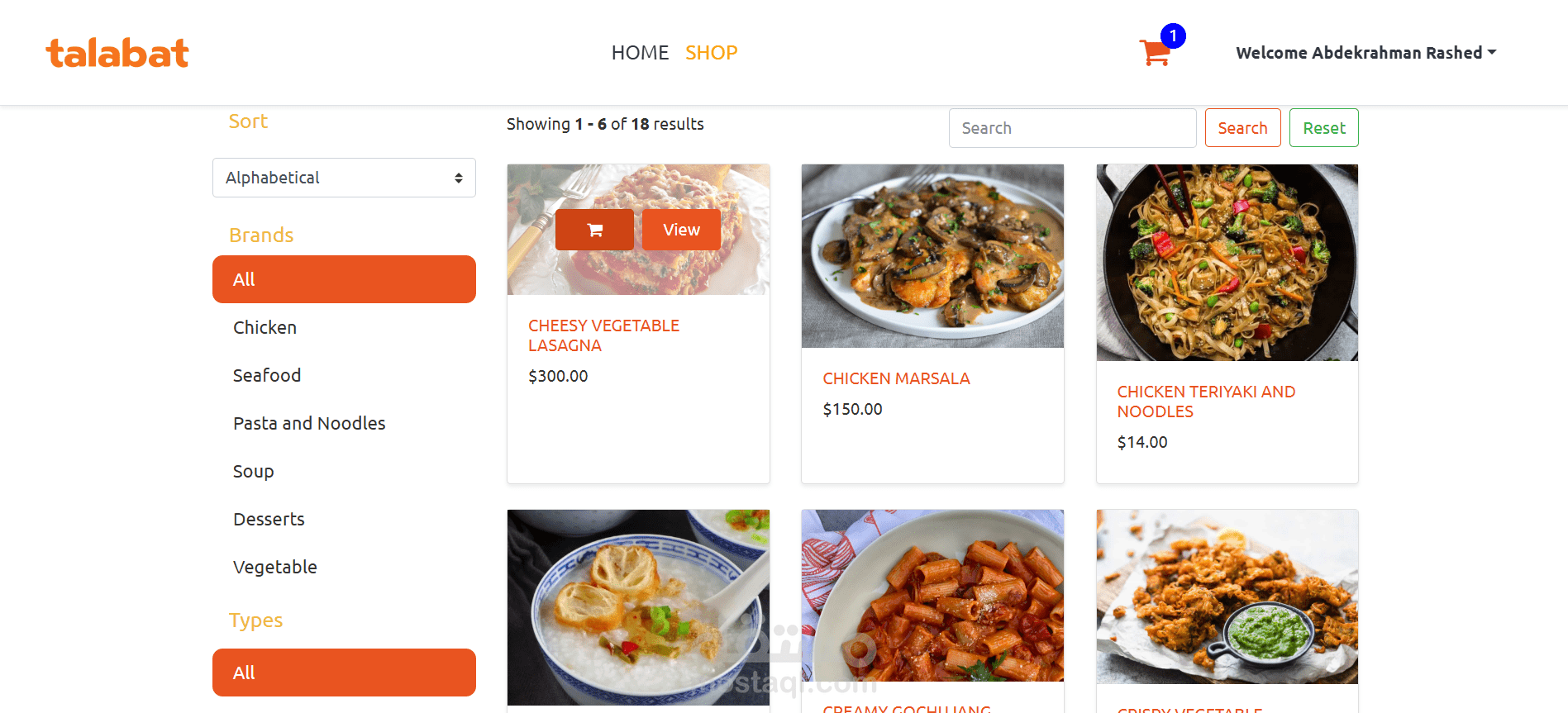 إمكانية التصفية والفرز وإضافة المنتجات للسلة