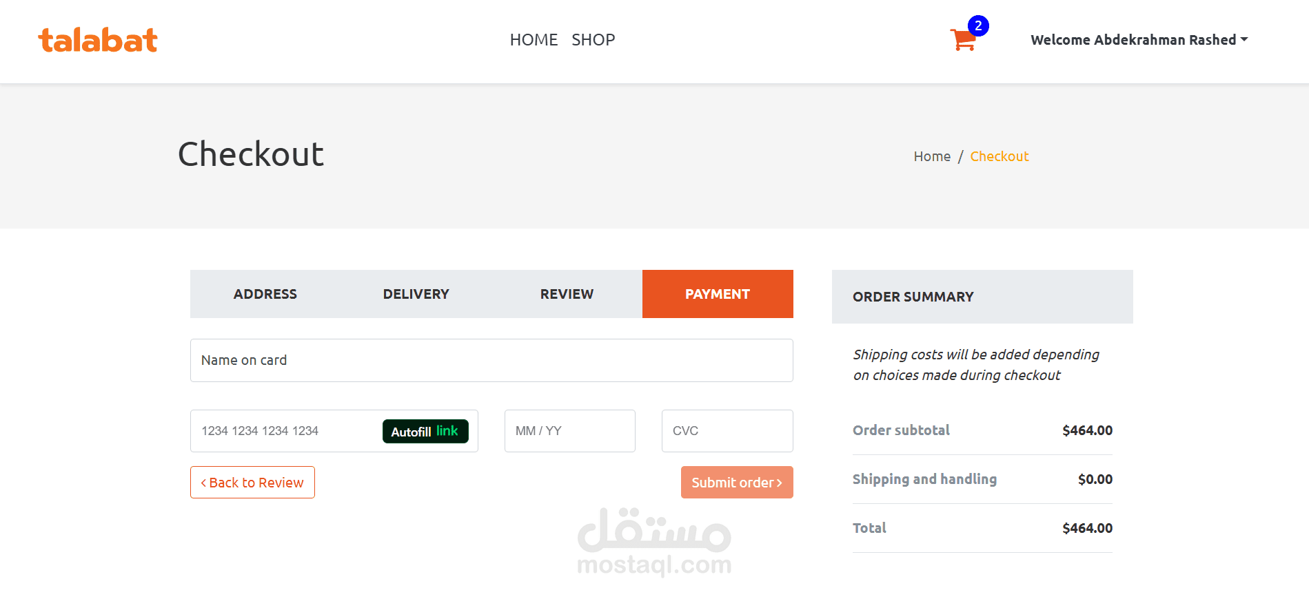 تنفيذ عملية الطلب والدفع عبر الواجهة بشكل متكامل
