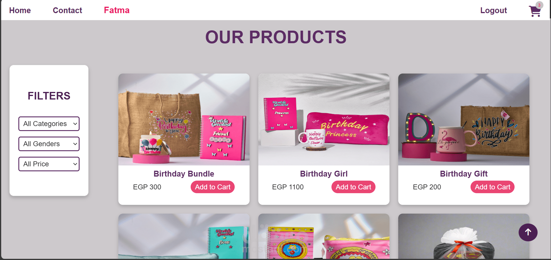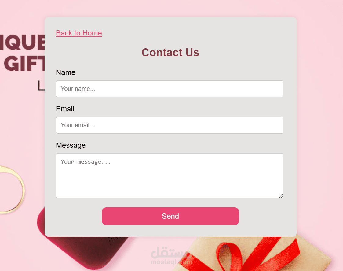 قمت بتصميم وتطوير موقع تجارة إلكترونية مخصص لبيع الهدايا اليدوية (Handmade Gifts) باستخدام HTML وCSS وBootstrap لتصميم واجهة جذابة ومتجاوبة مع جميع الأجهزة، بالإضافة إلى JavaScript لتحسين تجربة المستخدم.