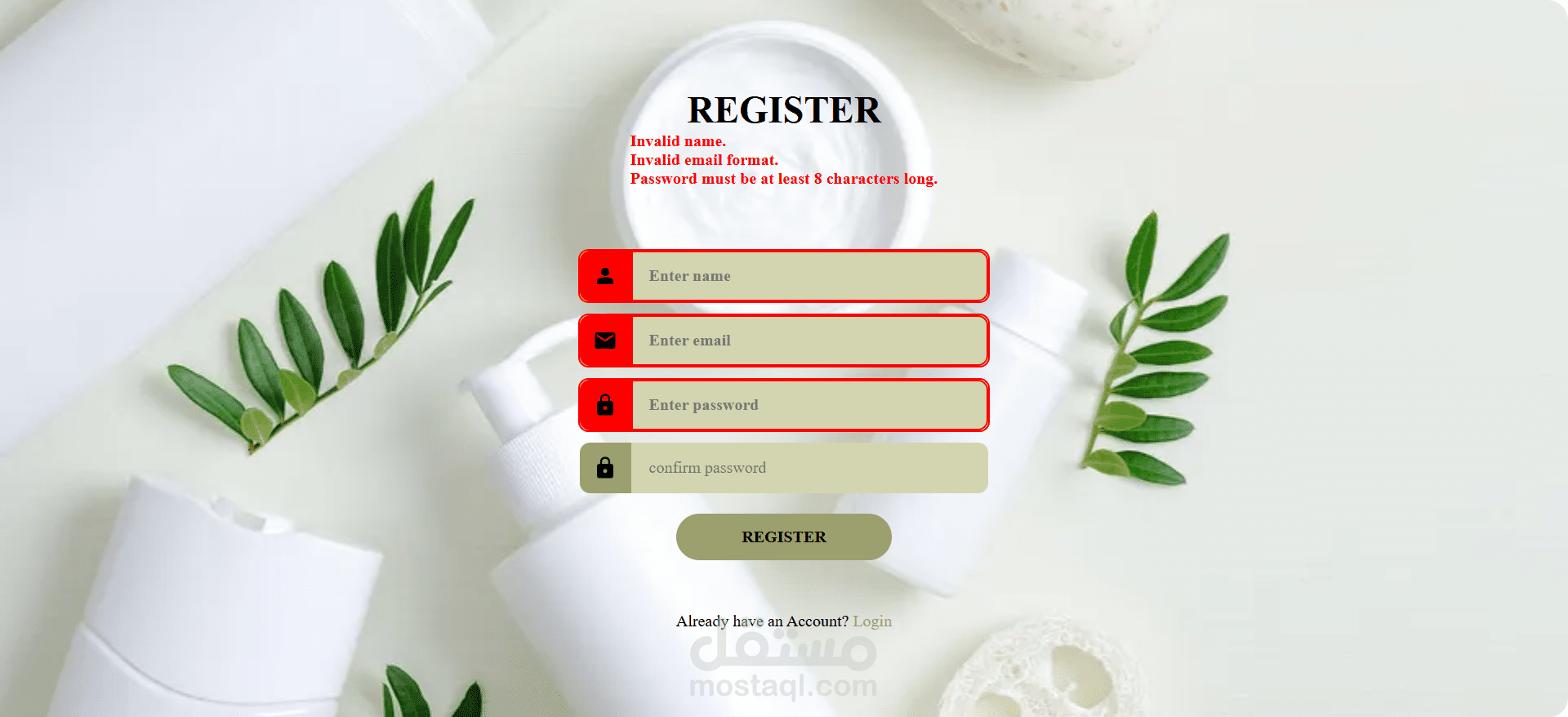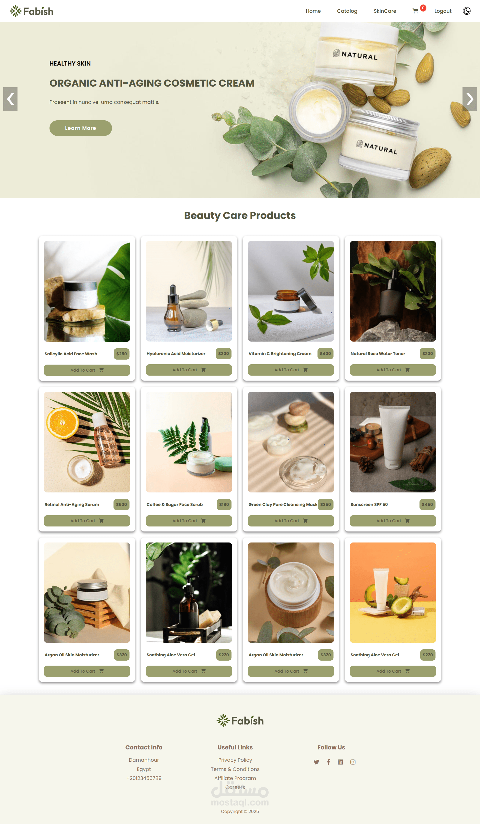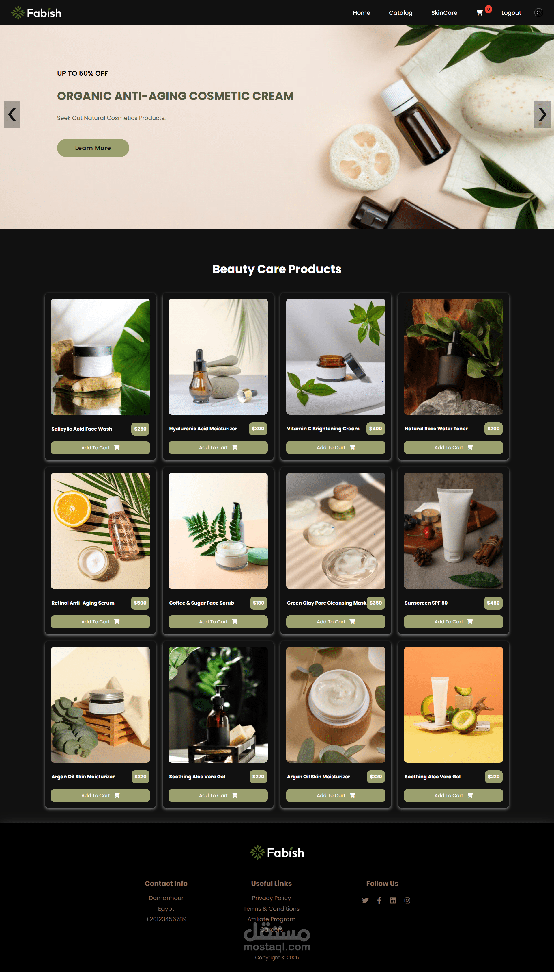 مشروع تدريبي لصفحة هبوط تفاعلية لعرض منتجات العناية بالبشرة، باستخدام: