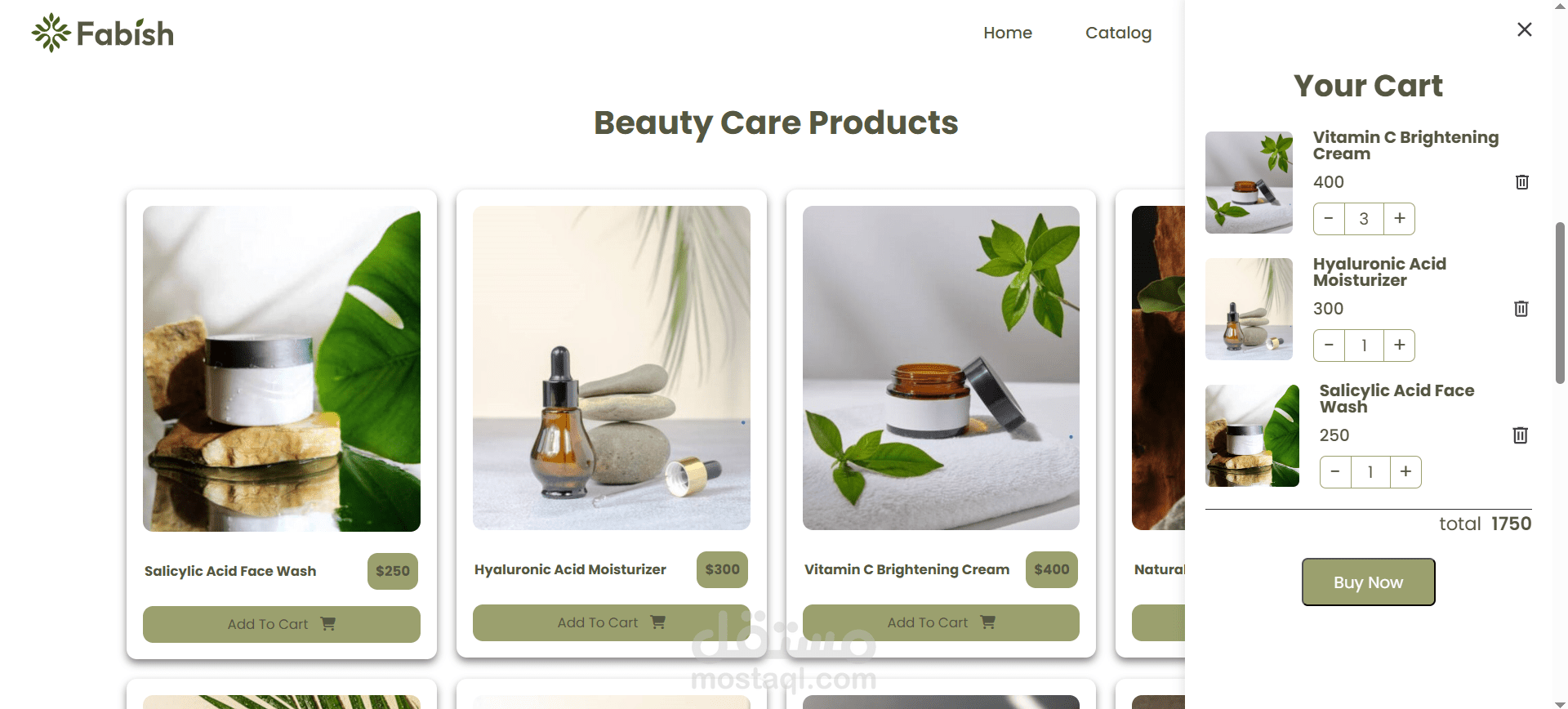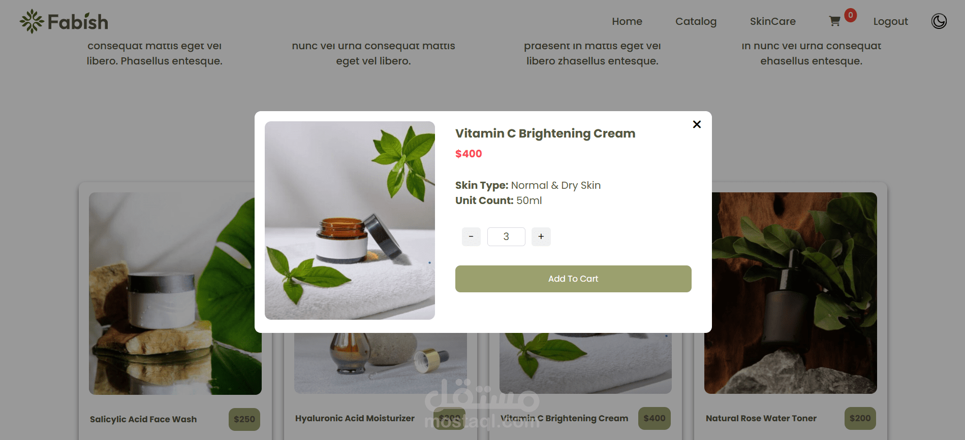 - إمكانية إضافة المنتجات إلى سلة الشراء من الكارد أو التفاصيل.