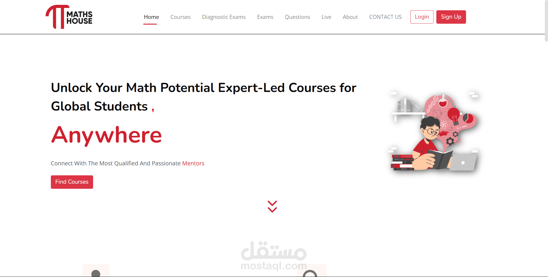 يحتوي على اشتراكات شهرية و سنوية و عرض للكورسات و الدروس و امتحانات بكافة اشكال الاسئلة