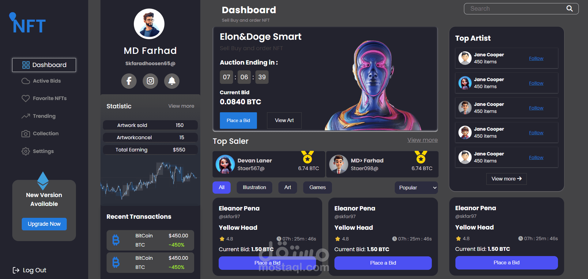 قمت بتصميم وتطوير لوحة تحكم ديناميكية متجاوبة لعرض البيانات بشكل مرئي ومنظم. تم بناء الواجهة باستخدام HTML وCSS مع JavaScript لتحسين التفاعل، وسهولة ربطها بقاعدة بيانات باستخدام PHP وMySQL.